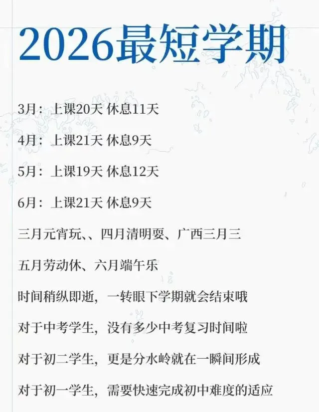同样的81天,对不同年级意义完全不同。我分开说,你只看自己孩子那一块。这81天里,穿插5个小长假。按每次假期结束需要2天找回状态算,至少有10天会被“重启、损耗”吃掉:加起来就是小半个月。放假中间几天:每天固定1小时“保持手感”(翻翻这周的错题)这样操作下来,至少你不需要像别人一样,花两天时间重新“开机”。二、初三家长:盯住“81天倒推法”不要看“还剩多少天”,要看“还能用多少天”。“不该错”的:在题号旁边写一句话提醒自己(如:再看一遍单位)1.不再做新题,只过错题本