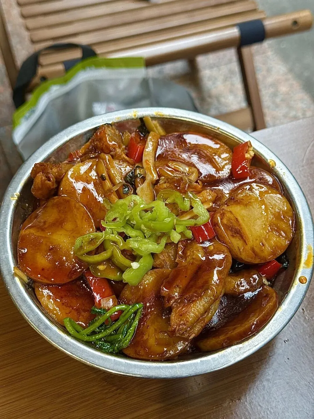 南宁吃到的这盘!一片片圆圆的东西,软糯的口感还挺好吃的!里面还有鸡爪鸡肉,香极了!!