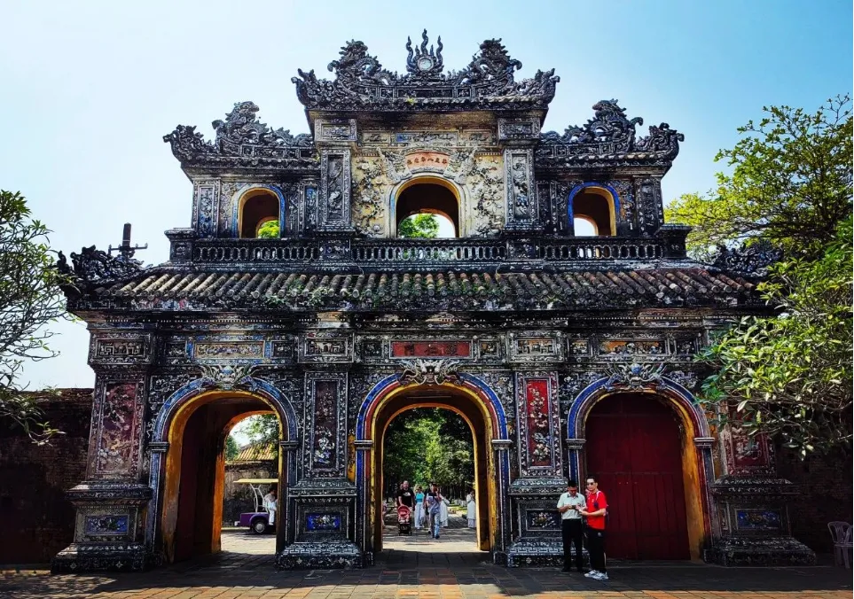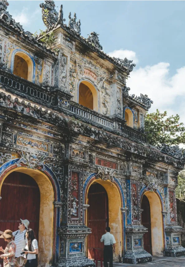 专列抵达顺化,后乘车前往【顺化皇城】(游览约2小时),顺化皇城,又名"大内",是阮氏王朝皇宫,也是越南现存最大且较为完整的古建筑群。1687年奠定雏形,1805年开始修建,历时数十年时间才建成现存规模。其建筑的样式,模仿北京的故宫,总面积6平方公里。皇城系方形,四周亦有护城河,城墙每边长600多米,城门有四,即前午门、后和平门、左显仁门、右彰德门。顺化皇城是越南阮氏王朝的皇宫,位于古都顺化,是越南现存最大而较完整的古建筑群,代表了越南古代建筑艺术的最高成就。顺化皇城于1993年被列入世界文化遗产名录。(因停车场距离景区较远,如不想步行可自费乘越南特色三轮前往皇城、体验法式三轮车的浪漫)中餐特色安排体验越南古代宫廷宴。后前往【天佬寺】(游览约40分钟)天姥寺是越南著名古刹,又名灵姥寺,已有近400年历史。传说寺内原供奉有32尊金身佛像,但法国占领时期,佛像已被盗。灵姥寺建于一个古占婆塔群遗址上,位于顺化西郊,处香江北岸安宁村高坡上。从顺化古都的市中心溯香江而上6公里,可达天姥寺。天姥寺的主殿大雄宝殿建在一座幽雅的花园内,里面第一间佛堂有一尊铜铸的弥勒佛坐镇,在大雄宝殿后面还有一座官武祠和官音寺。乘车前往【顺化圣母大教堂】(游览约30分钟)参观游览,顺化圣母大教堂是一座现代大教堂,整个建筑外型酷似一座城堡。前高后低,两侧高中间低,两个高耸的哥特式尖顶气势雄浑。教堂两侧各有一片花园,是当地人读书和休憩的场所。后乘车前往岘港、途中打卡【灵姑湾】在越南狭长的海岸线上,岘港与顺化之间,有一处出产珍珠的海上明珠—灵姑湾。这里面朝大海,背靠海云岭,地理位置得天独厚,自然风景秀美怡人,获评美国杂志发布的50个人生必到之处。