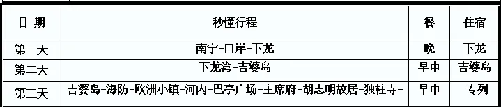 费用包含:南宁起止大巴,越南段专列,