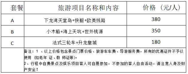 不包:讲解器50元,东兴餐厅-口岸电瓶车10元/人/程,照相费5元/人