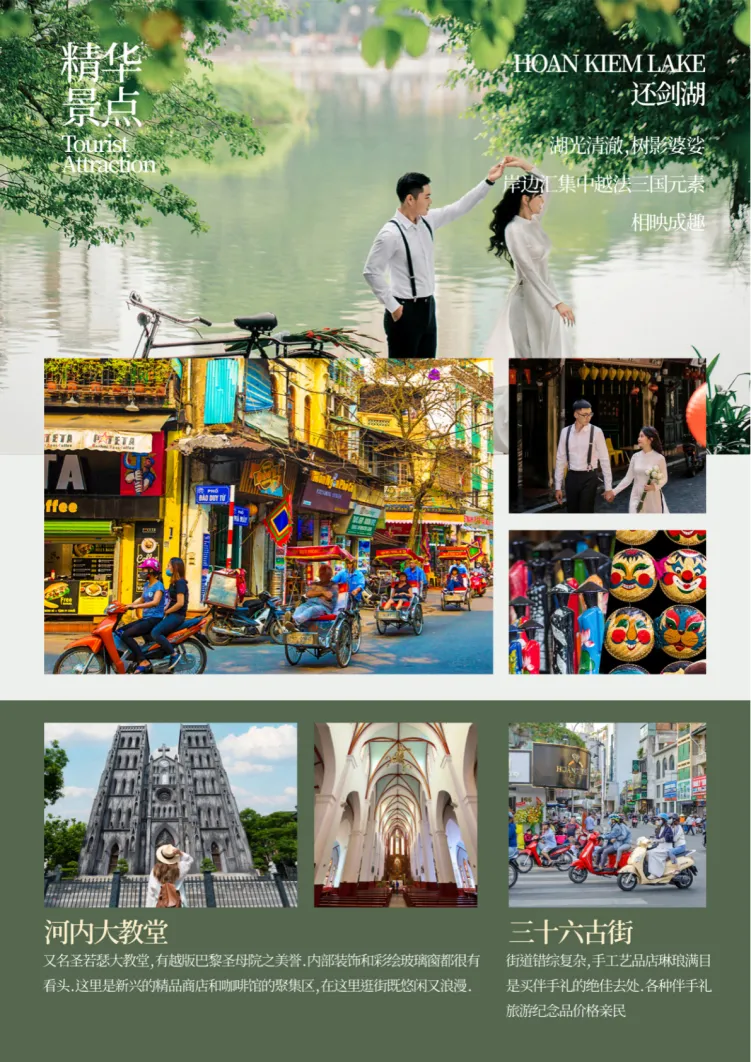 游览【还剑湖】,自由漫步还剑湖,还剑湖位于河内旧城的中心区,被称为河内第一风景区,这里汇聚着中越法三国的文化气息,中国的汉字,越南的奥黛,法式的咖啡馆和面包。在美丽的还剑湖旁和狭窄的古街上,经常可以看到当地的特色交通工具-人力三轮车。随后可以乘坐河内特色人力【三轮车】(费用自理)(0.5小时);观赏沿途的风景,乘坐着这种人力三轮车慢悠悠地游览河内古街是您认识河内的最佳方式。