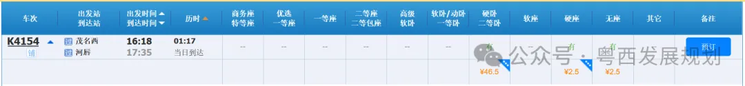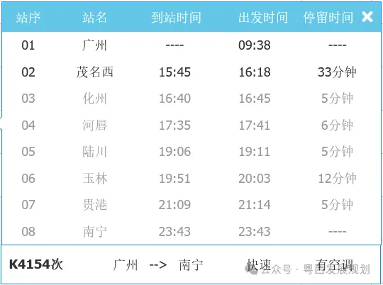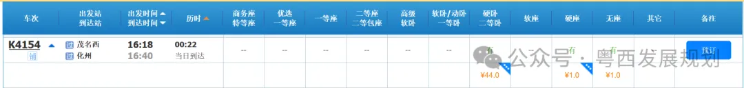 近日,12306售票官网显示,K4154班次列车,广州至茂名西最低10.5元,价格优2折惠至本月底(2月28日)。