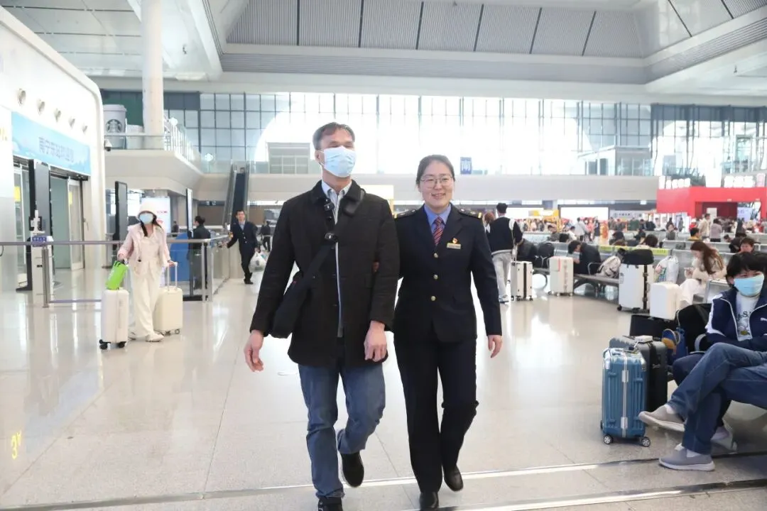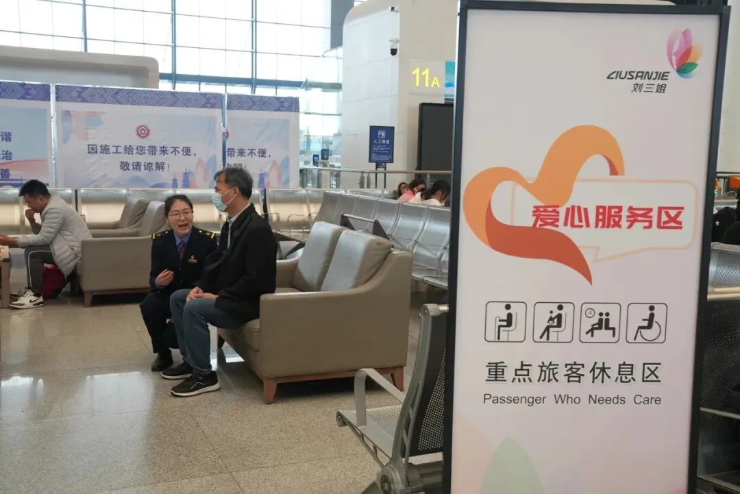 “苏师傅,您把手给我,咱们往12点方向走。”秦蓉蓉一路引导苏金通过绿色通道,在爱心服务区短暂休息后,直达车厢座位。