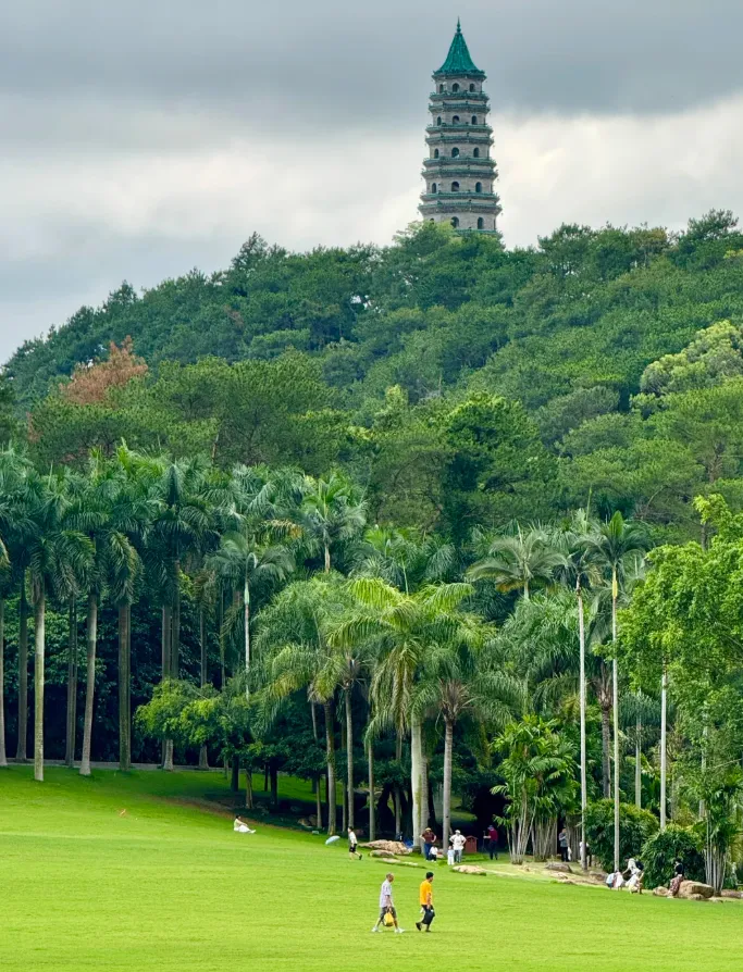 在青秀山找龙象塔时迷了路,扛着单反的大爷看我原地打转,用夹壮的普通话招呼:“友仔(小伙子),拍全景跟我来!” 他带我钻到观音禅寺后坡,指着虬结的榕树根说:“阴天拍邕江才出水墨味咧!” 闲聊才知这5A景区居然免费,他每周都来拍鸟,“退休金够买奶茶就得了,要那么多钱做啥子?” 镜头里灰鹭掠过翡翠色的塔尖,他手机忽然响起彩铃:“尼的呀(好的呀)~”