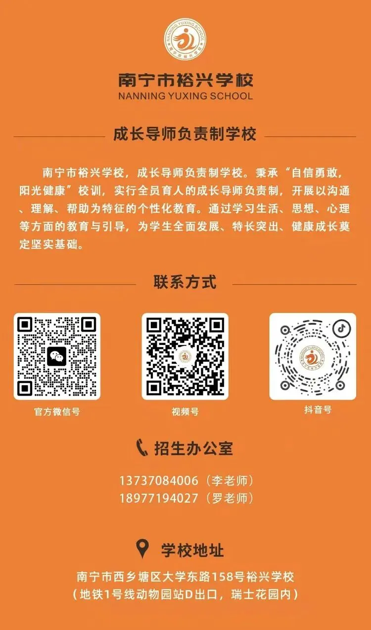 学校地址:南宁市西乡塘区大学东路158号裕兴学校(地铁1号线动物园站D出口,瑞士花园内)