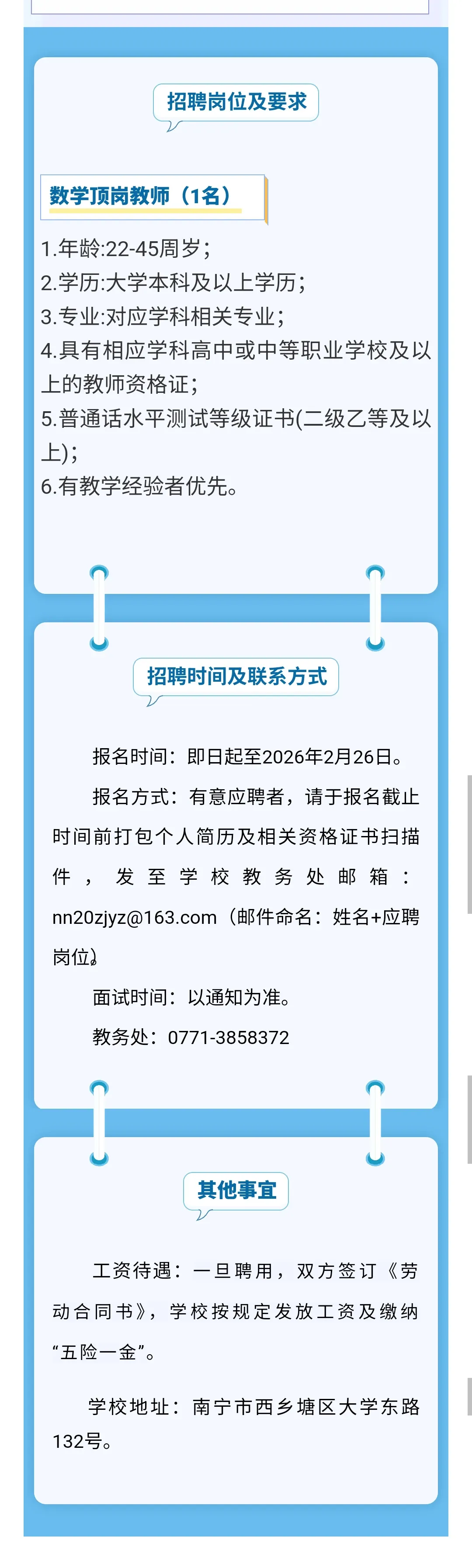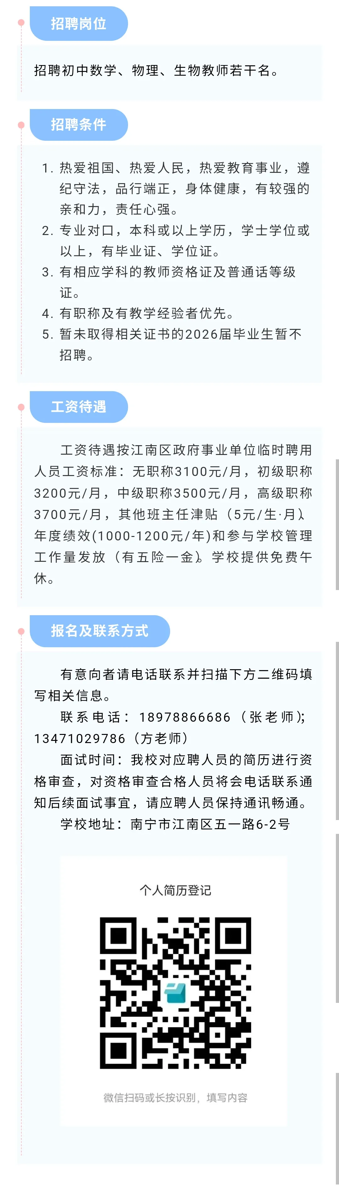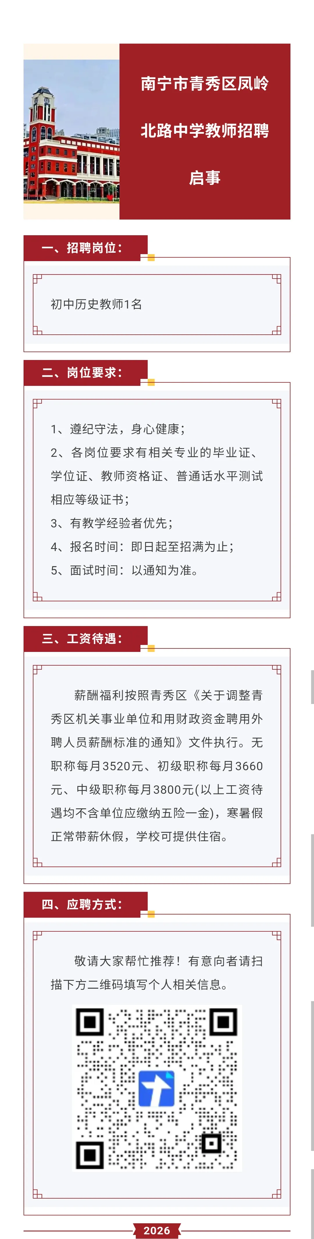 南宁教师招聘:南宁市青秀区凤岭北路中学招聘