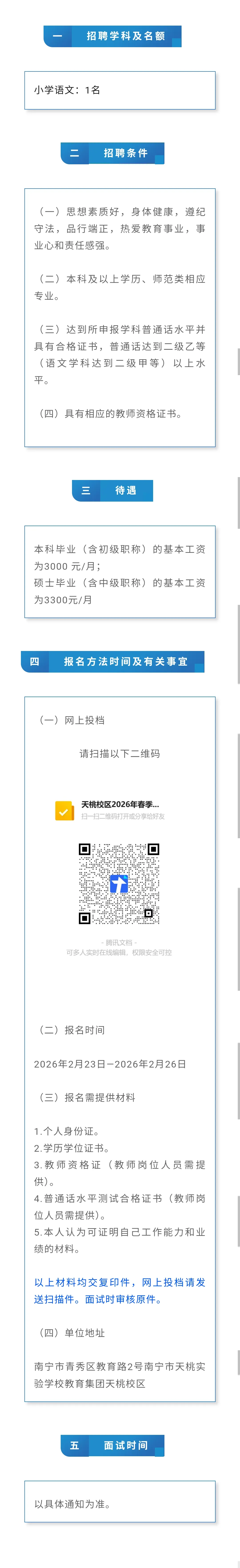 南宁教师招聘:南宁市天桃实验学校教育集团天桃校区