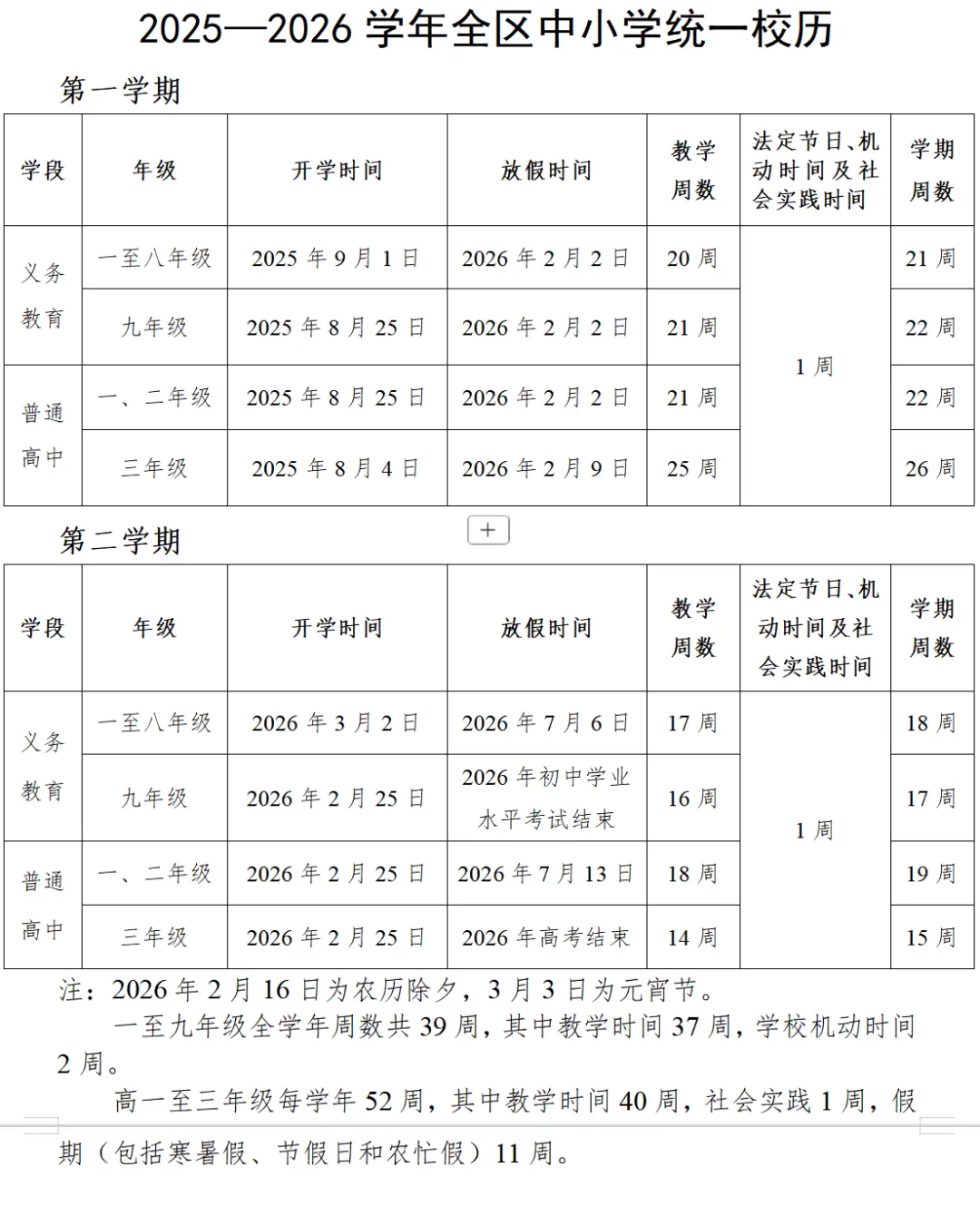 九年级、普通高中于2026年2月25日(星期一,农历正月初九)开学。