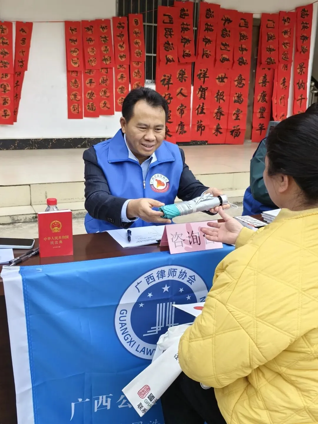 在立新村、龙贵村的活动现场,国浩南宁公益法律服务团设立法律咨询台,围绕土地流转、婚姻家庭、劳动保障、民间借贷等与农民生产生活息息相关的法律问题,为村民提供“一对一”专业解答。国浩南宁公益法律服务团律师用通俗易懂的语言以案释法,引导村民学法懂法、守法用法,学会依法维护自身合法权益。咨询台前人来人往,村民们带着疑惑而来,揣着满意而归。