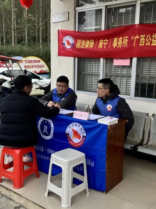 同时,国浩南宁公益法律服务团还向村民发放了法治宣传手册、普法资料,并赠送普法环保袋等法治主题小礼品,让法律知识随新春祝福一起走进千家万户。
