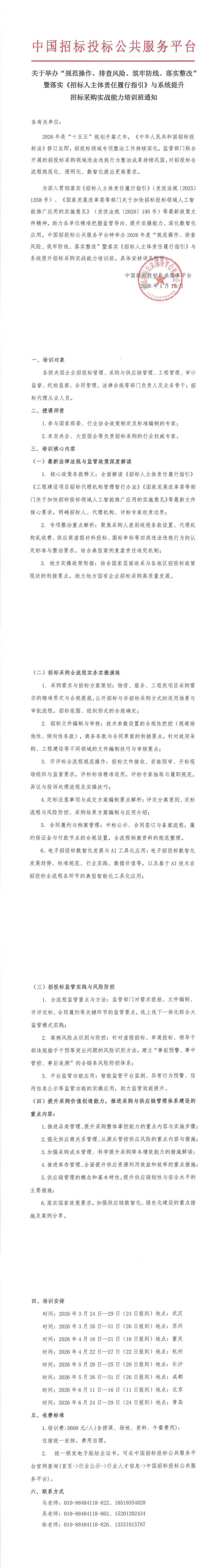 3月 武汉 苏州 昆明 南宁 | 2026 招标 采购 造价 项目管理全体系实战培训 全国巡回开班
