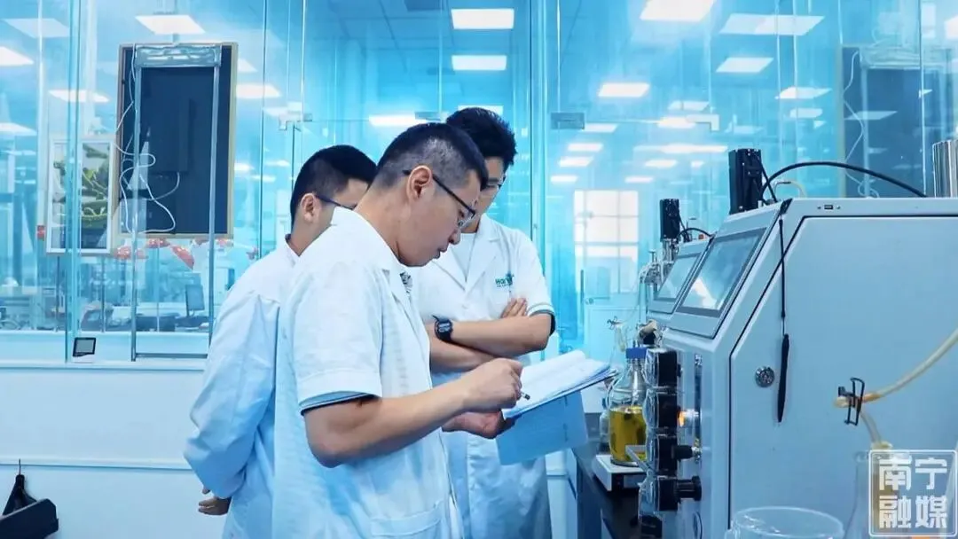 在创新赛道上奋勇争先的还有南宁汉和生物科技股份有限公司。企业实验室里,发酵罐连续运转,科研人员潜心攻关,芽孢杆菌发酵水平、5-氨基乙酰丙酸等产品达到行业领先水平,高纯度生物制品批量出口,成功从农业领域迈向高端生物制造领域。
