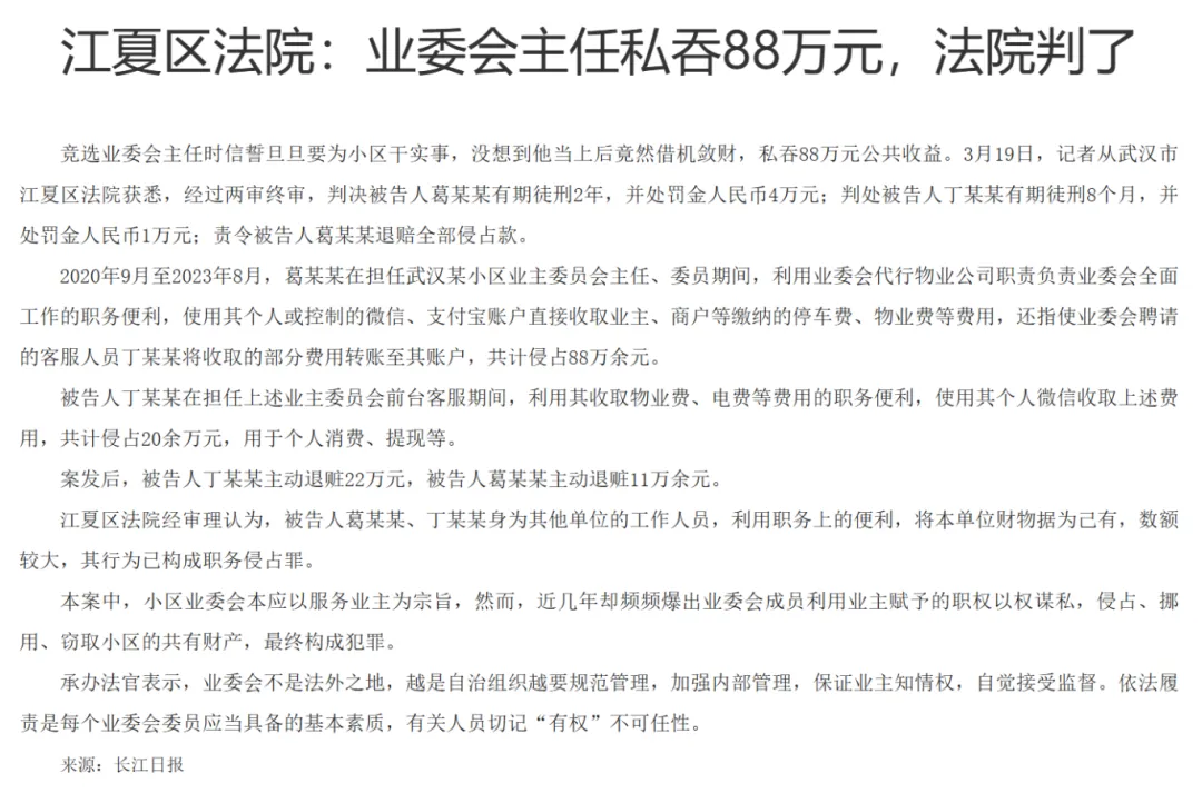 类似戏码并非南宁独有。近年来,全国已有不少业委会成员借“自治”之名、行“谋私”之实的案例。