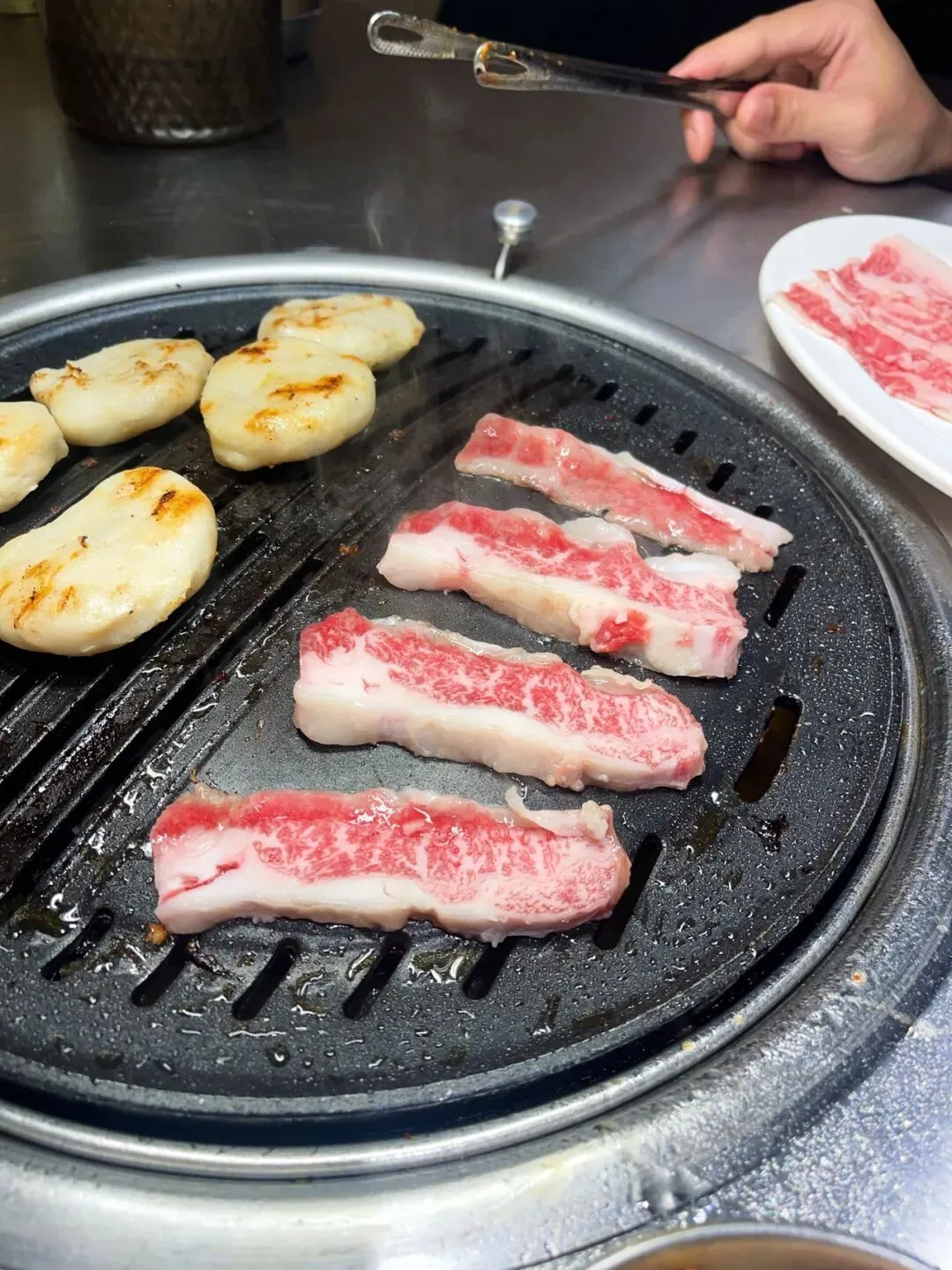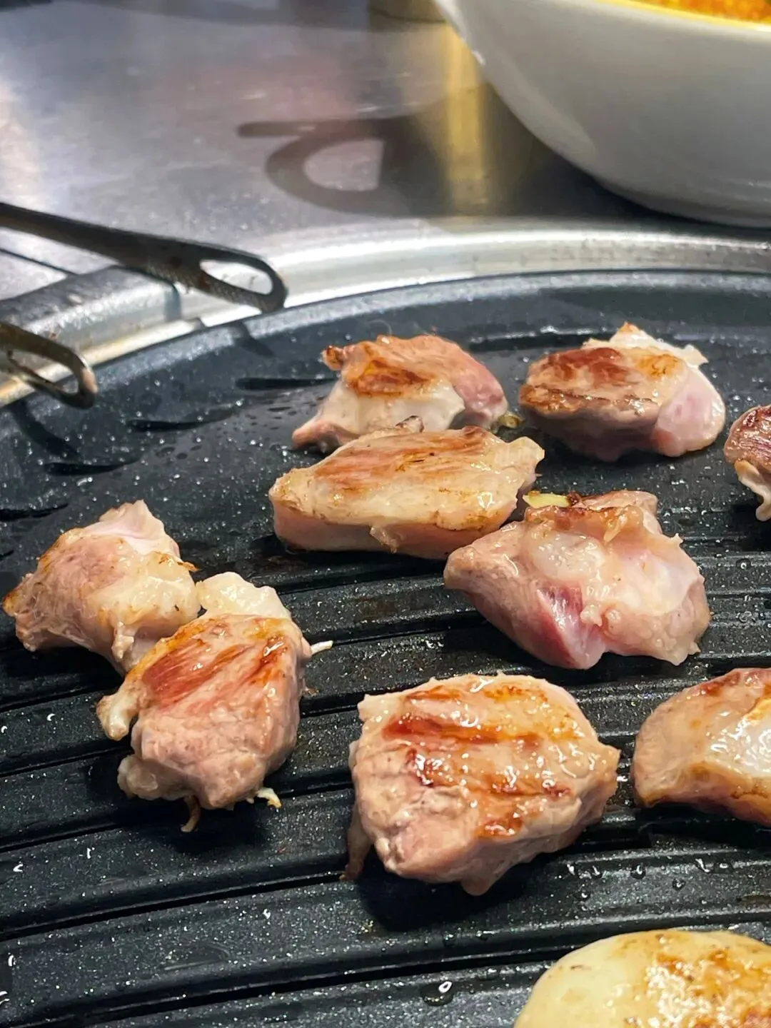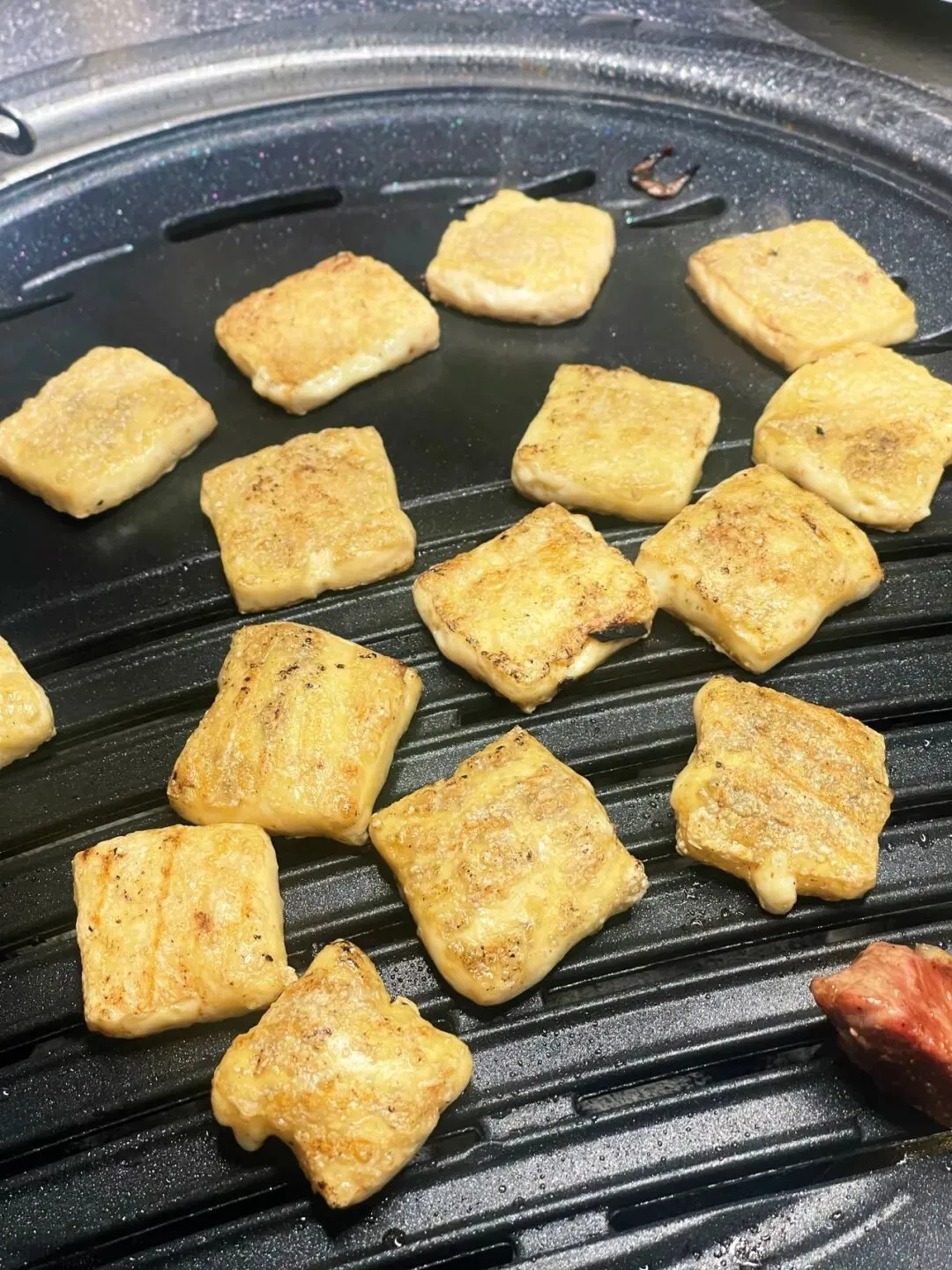 十多秒翻个面,边缘微焦,咬下去油润焦香,肥而不腻,绝了。