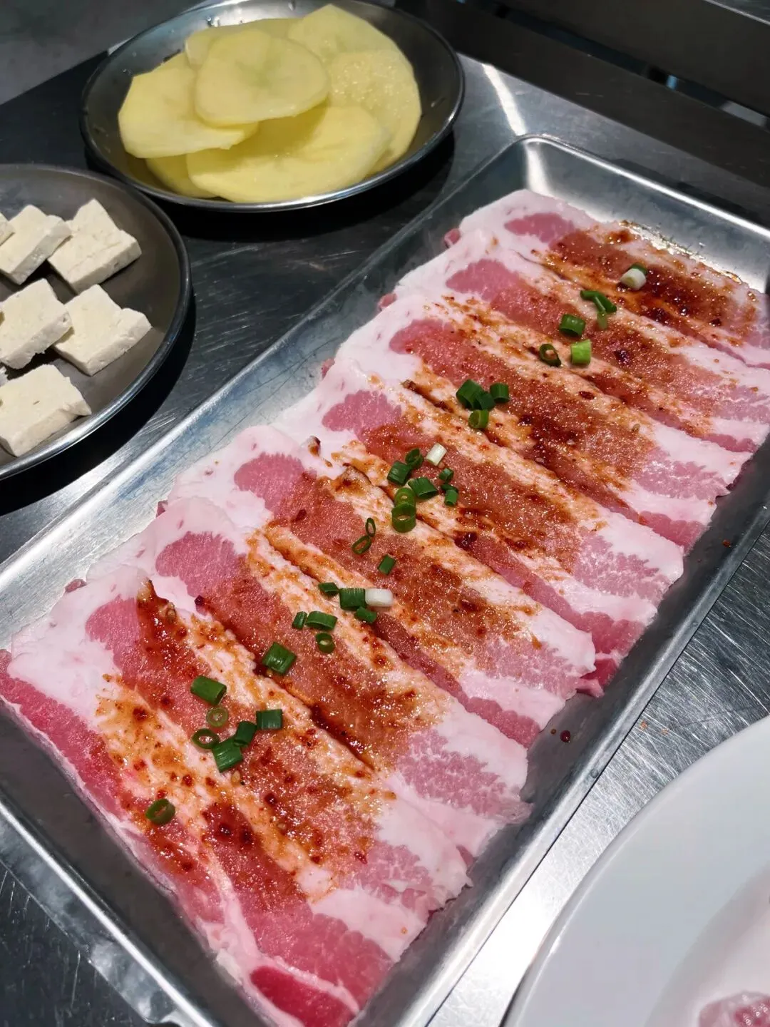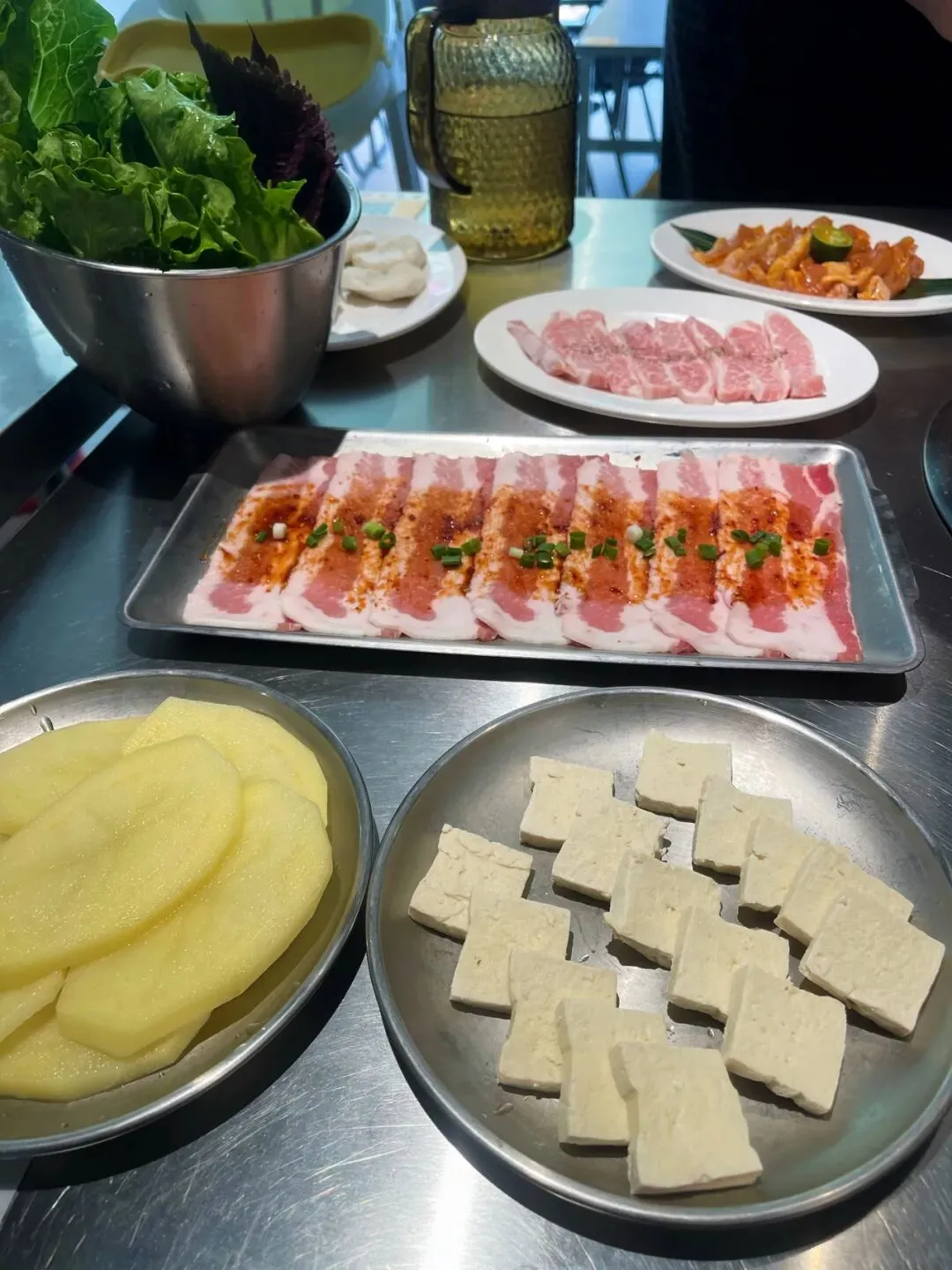 蘸料和小菜必须夸一下,尤其是🥔土豆泥和豆芽,每回都得续上两三次,土豆泥细腻绵密,带着奶香,空口吃都行。