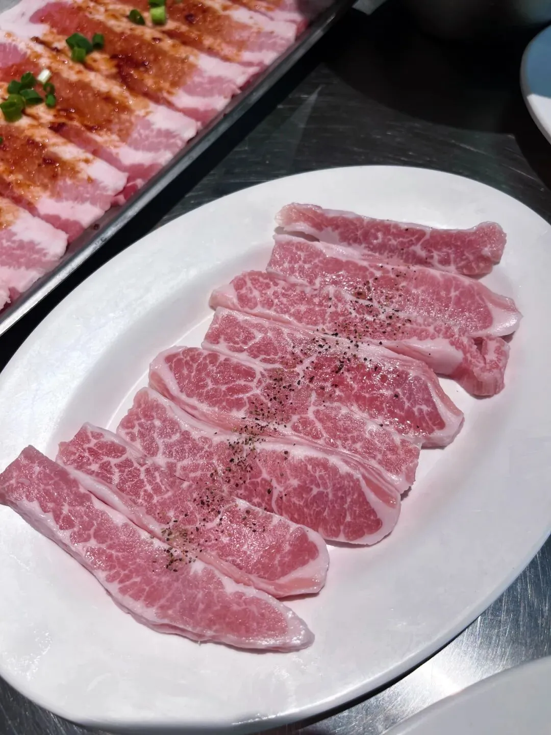 这肉端上来就是赏心悦目,雪花纹路漂亮得不像是这个价位的。