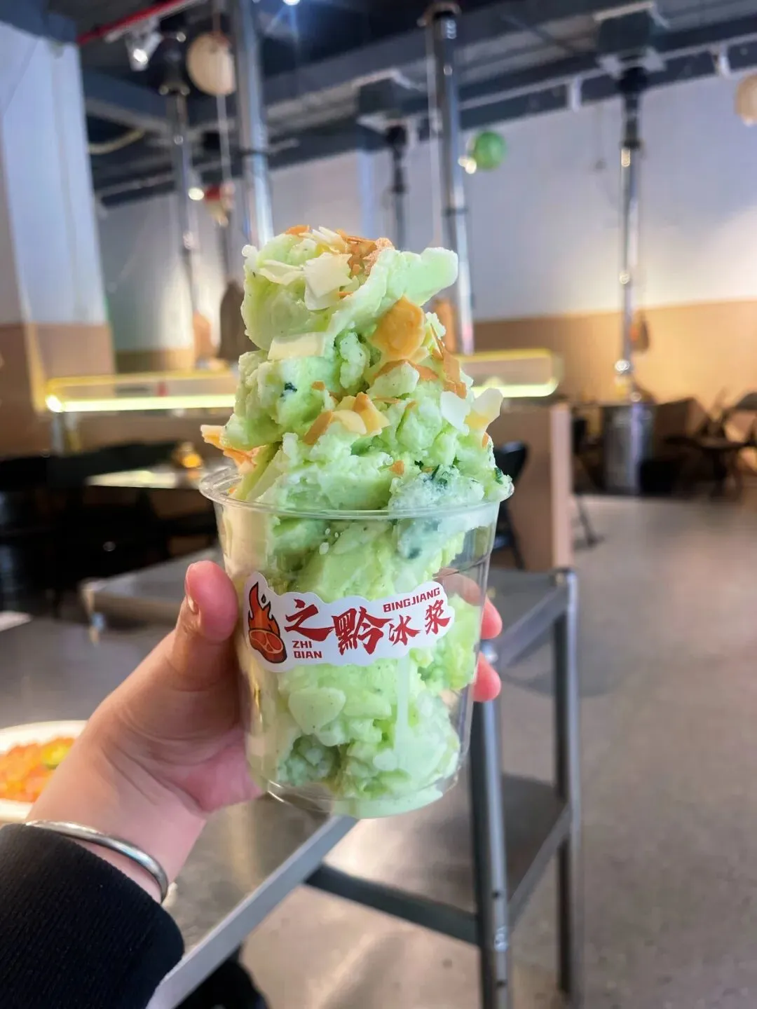 这个真的和烤肉是灵魂伴侣!我每次必点黄瓜味,清清爽爽,上面还撒了坚果碎,一口烤肉一口冰浆,太解腻了。