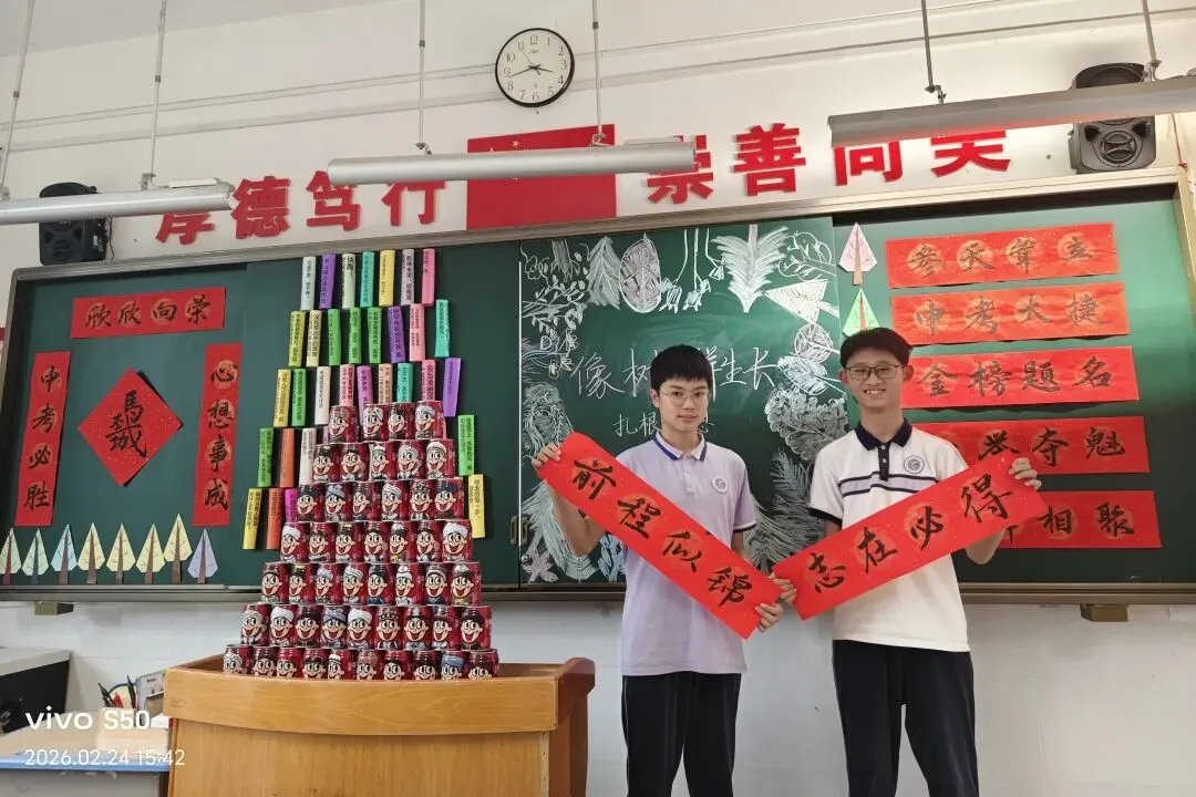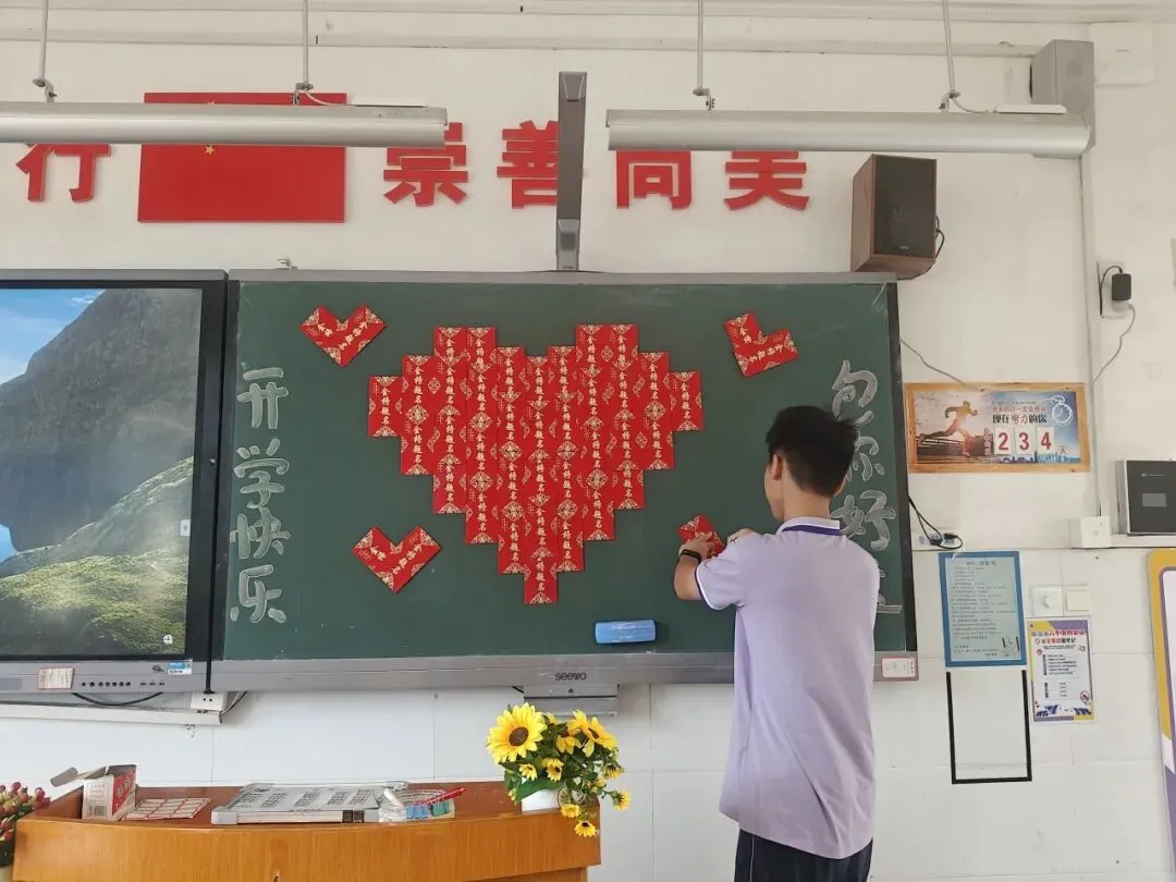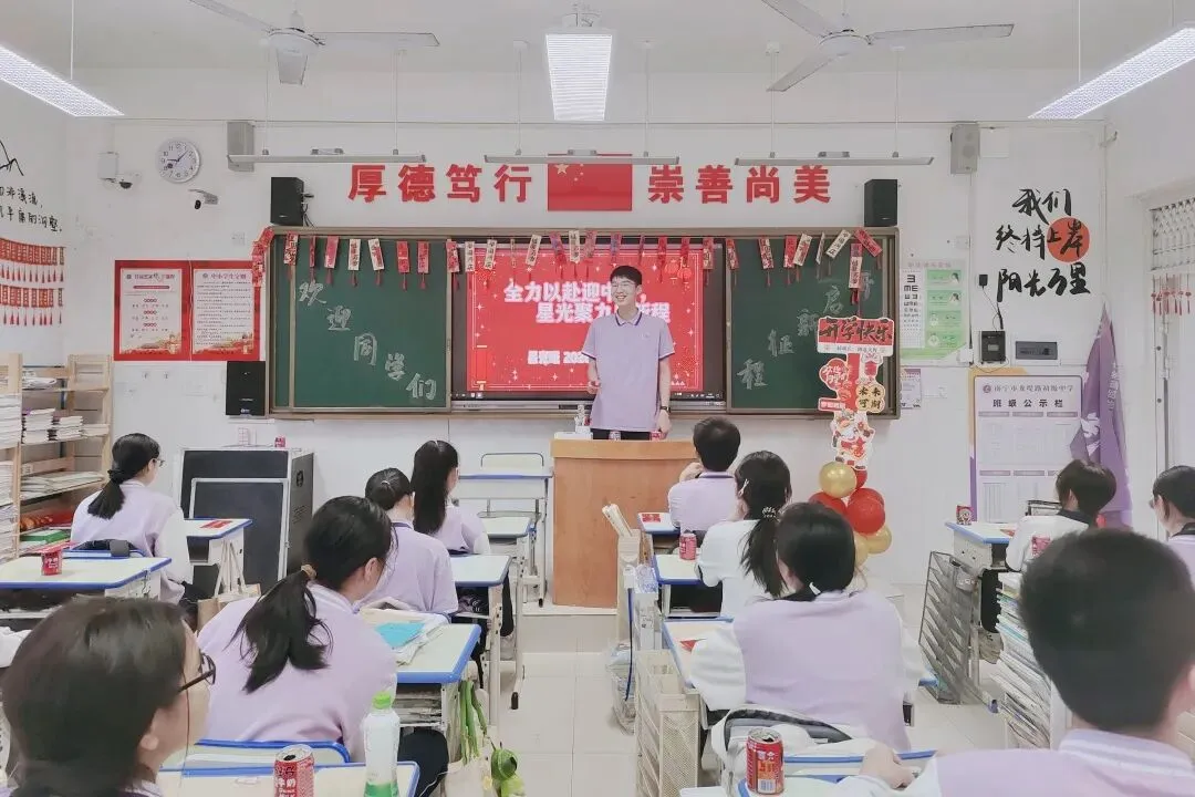 2月24日下午,南宁市龙堤路初级中学校园里一派热火朝天的景象。沉寂了一个寒假的九年级教室,被老师们用创意和爱心“一键重启”,披上了节日的盛装。为了迎接新学期返校的学子们,各班班主任化身“氛围组”,精心策划了一场别开生面的开学欢迎仪式。