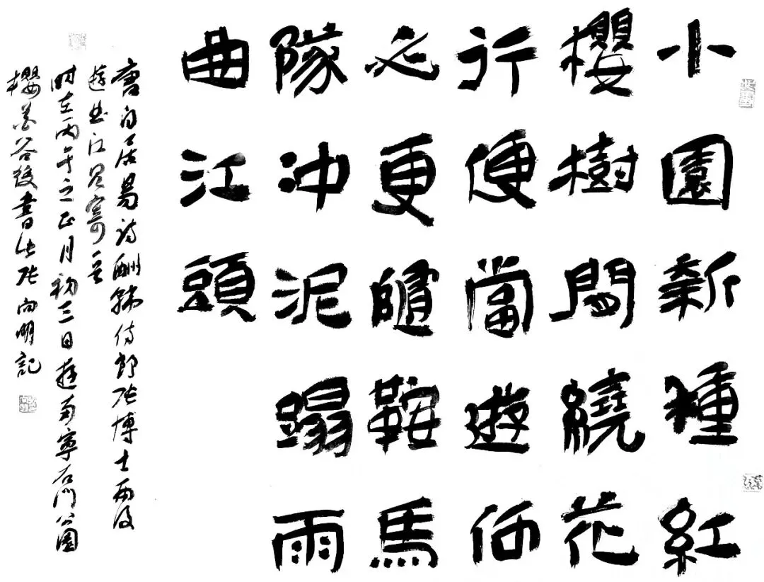 唐代诗人白居易《酬韩诗郎、张博士雨后游曲江见寄》诗中句:"小园新种红樱树,闲绕花竹便当游。"