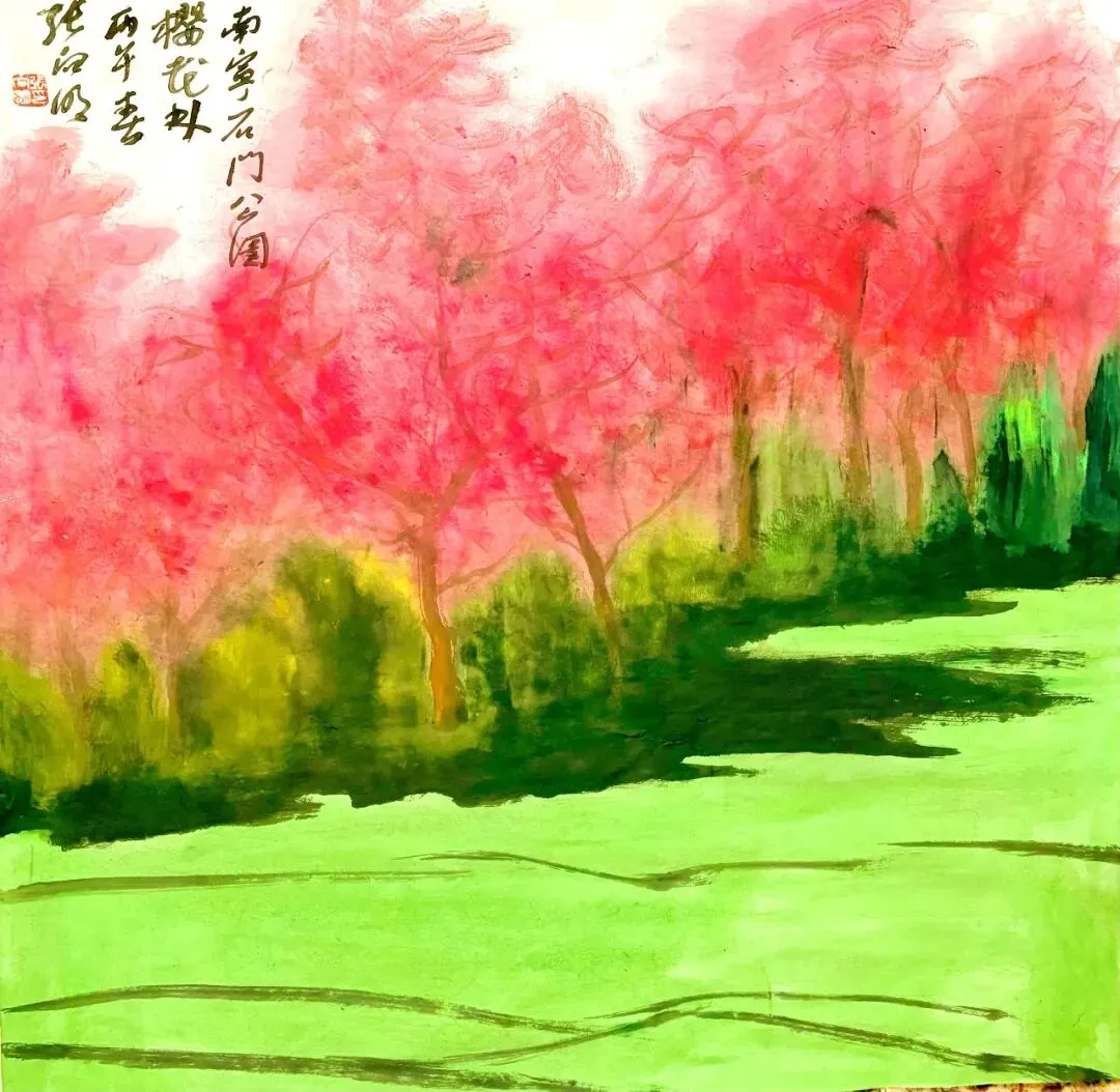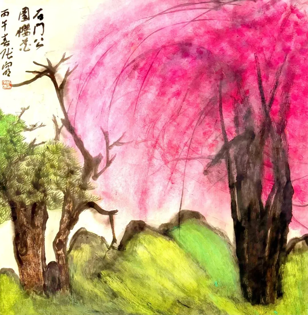张向明石门公园画樱花草稿12幅: