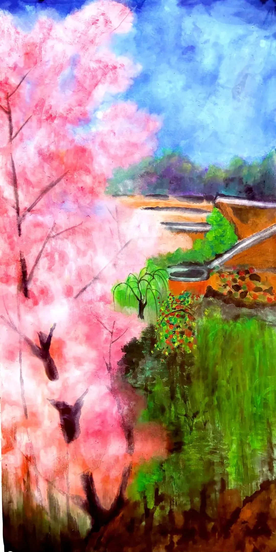 樱花林木间的流风廻雪之美,美的让人眩晕。要想画好写生稿,才发现其中之难度。