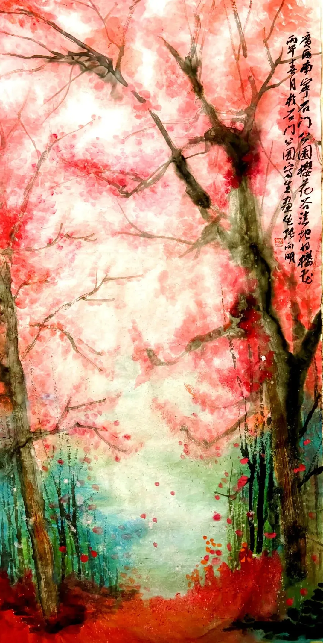 而樱花岭的樱花树,大多已培育成材,花朵劲健而硕大,透着一种成熟美丽的胭脂之红,而其间红粉雪白的花树,却恰象少女粉白羞涩时的面颊,透着一种盈盈的,青春灿烂的艳姿万般。