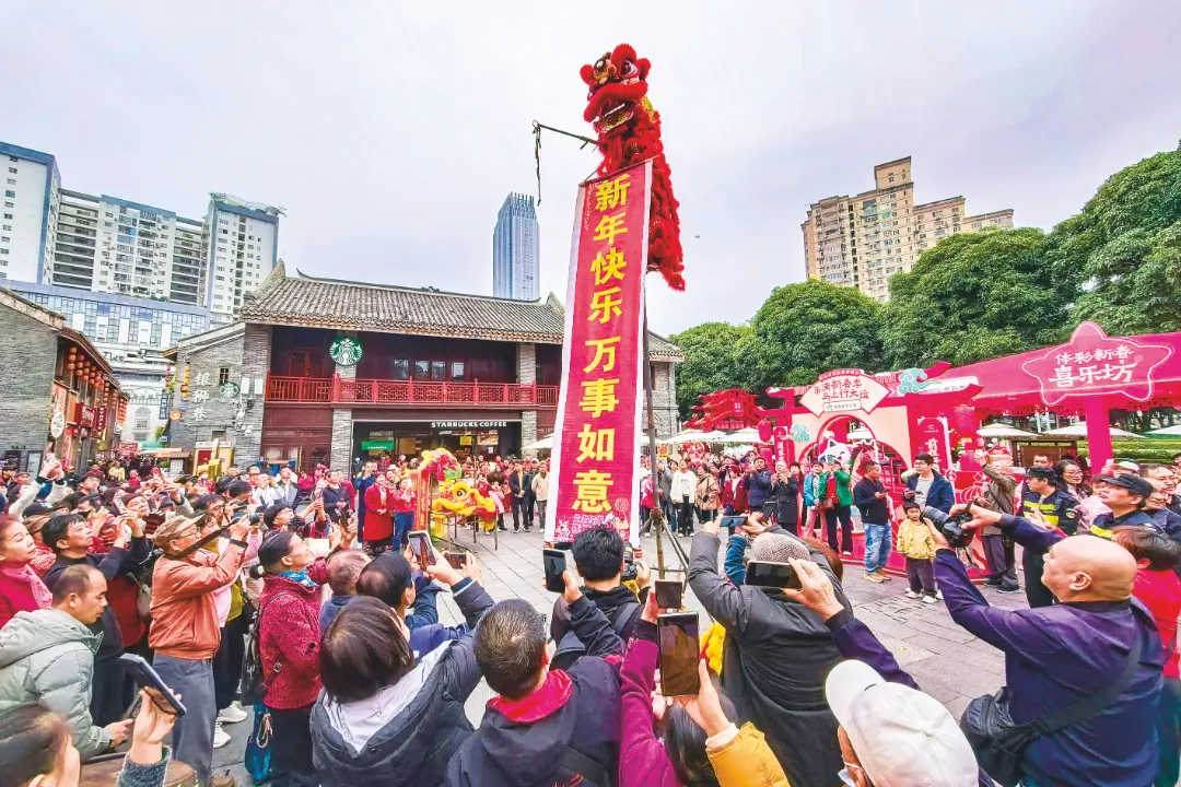 作为南宁城市记忆的活态载体,邕州古城在这个春节真正实现了“人财两旺”。2月15日至23日,进入邕州古城的游客达到203万人次,同比增长64%,青砖黛瓦间织入壮锦纹样,老字号食铺飘出熟悉香气。升级后的历史文化街区不仅成为全时段消费主战场,更成为外地游客体验“老南宁”味道的首选地。据不完全统计,春节9天,邕州古城营业额截至23日晚六点已超过2416万元。