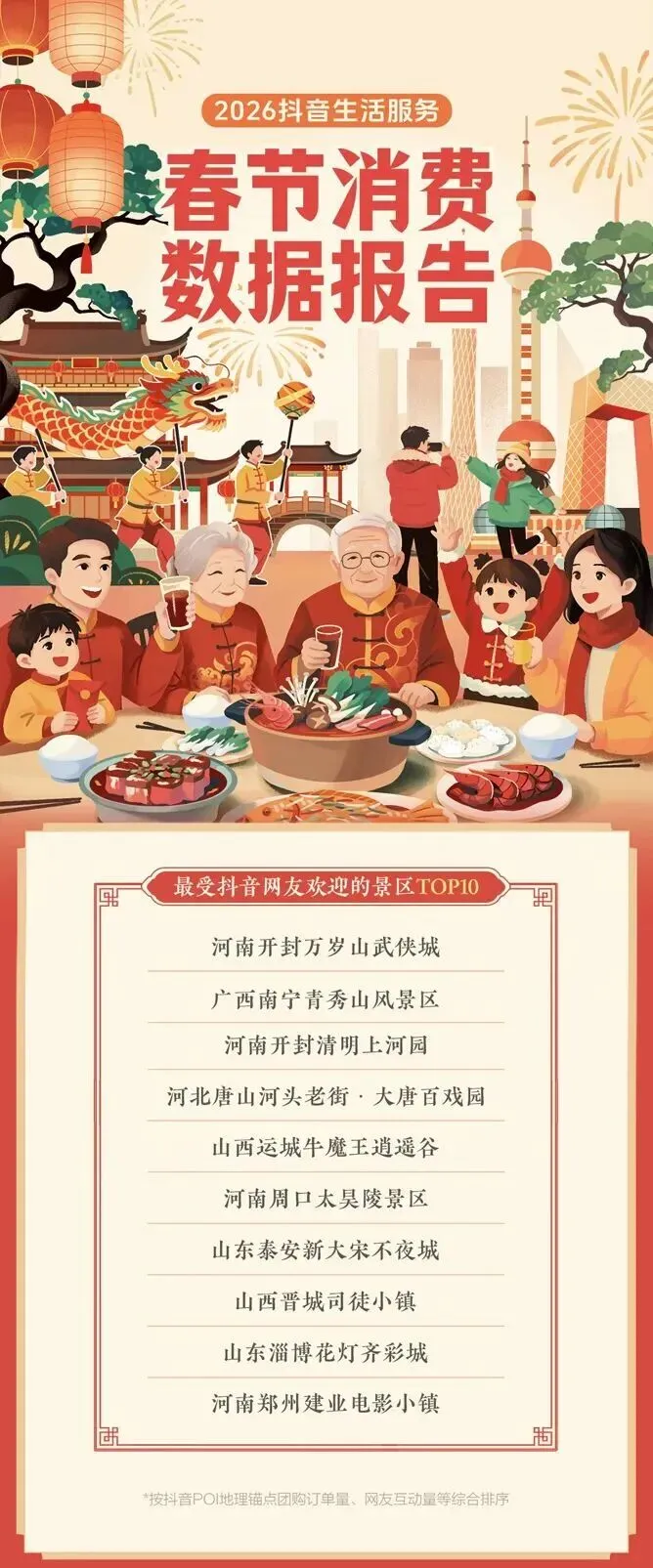 2月23日,抖音生活服务发布了春节消费数据报告,青秀山风景区成为春节假期最受抖音网友欢迎的景区top10。