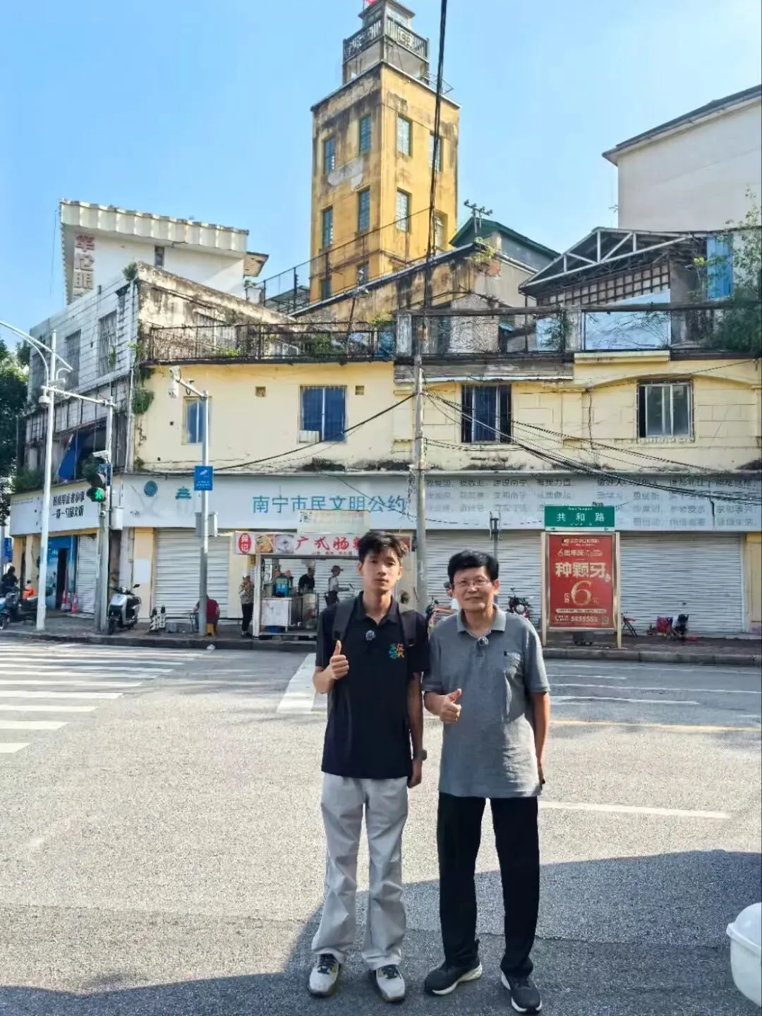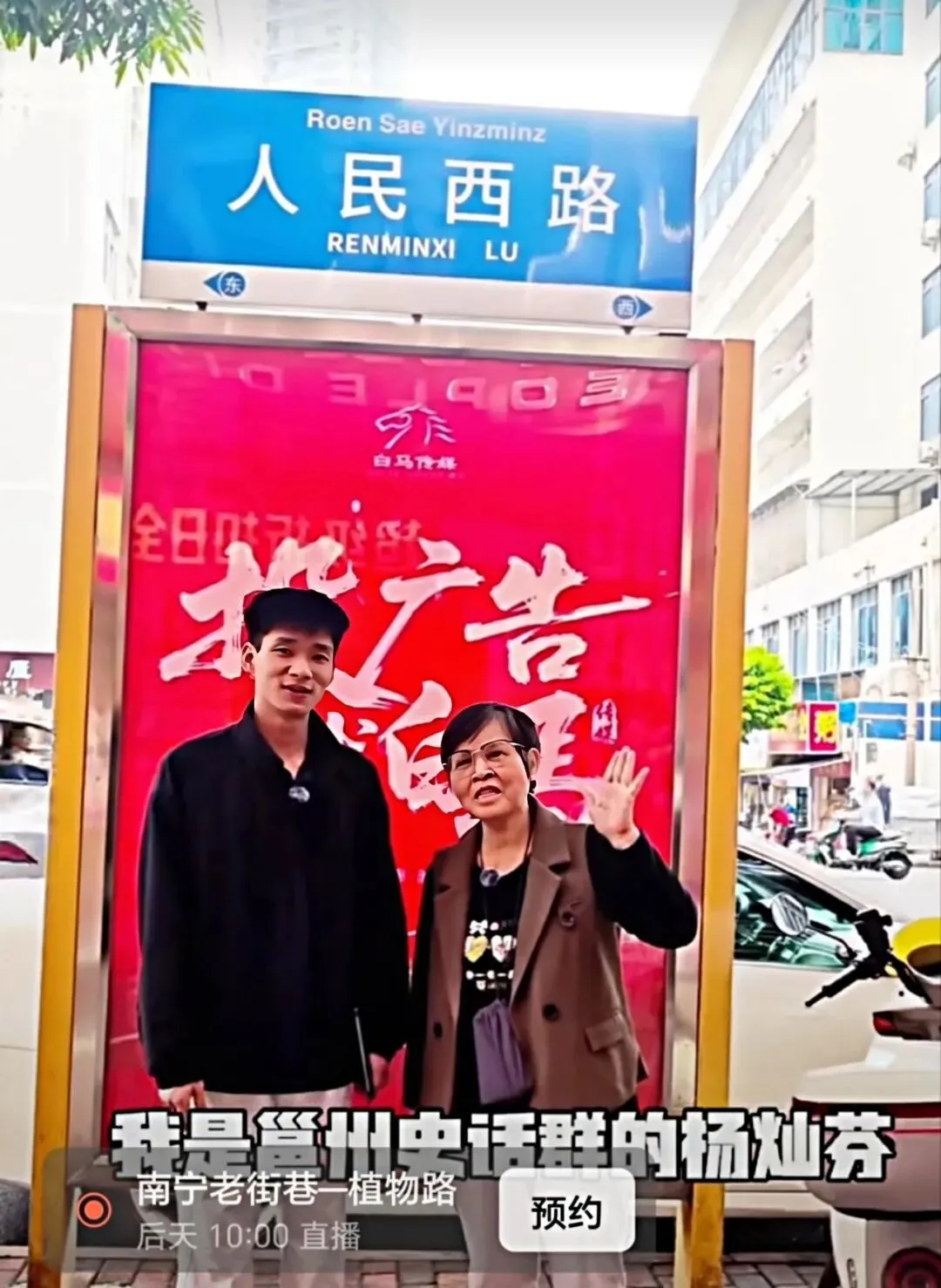 (作者陈说往事)2026年2月24日马年初八,喧嚣半个月的中山路游客少了许多,邕州史话群的黄信耀与“邕有你我”视频号的主持人于永存在镜头前一问一答,边走边聊,开始了中山路的现场直播。年近七十的“老南宁”黄信耀,把从小到大走过无数次的中山路,一一道来:钟鼓楼、马草街、女子小学(中山北小)、仙池八珍面(粉)、文化馆、恋城会馆、萧云举府第、正谊书院、南门正街、南门、桥拱、光昌汽灯店、中山南小学(玄檀庙学堂)、保爱善堂(廖仙观)、基督教堂(祁里扶医院)、陆氏总宗祠,丰富的历史文化如一幅幅画卷徐徐展开。这是自2025年9月29日以来,两个单位合作,为广大游客推出的介绍15条南宁老街巷历史文化和吃喝玩乐指南的现场直播最后一场。2.共和路 介绍人李裕宁