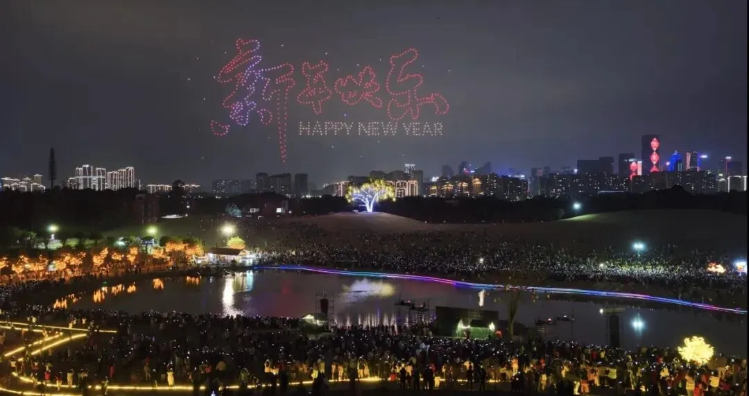 70余组大型灯组搭配千架无人机表演