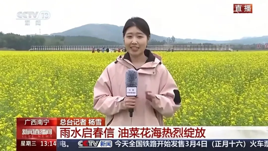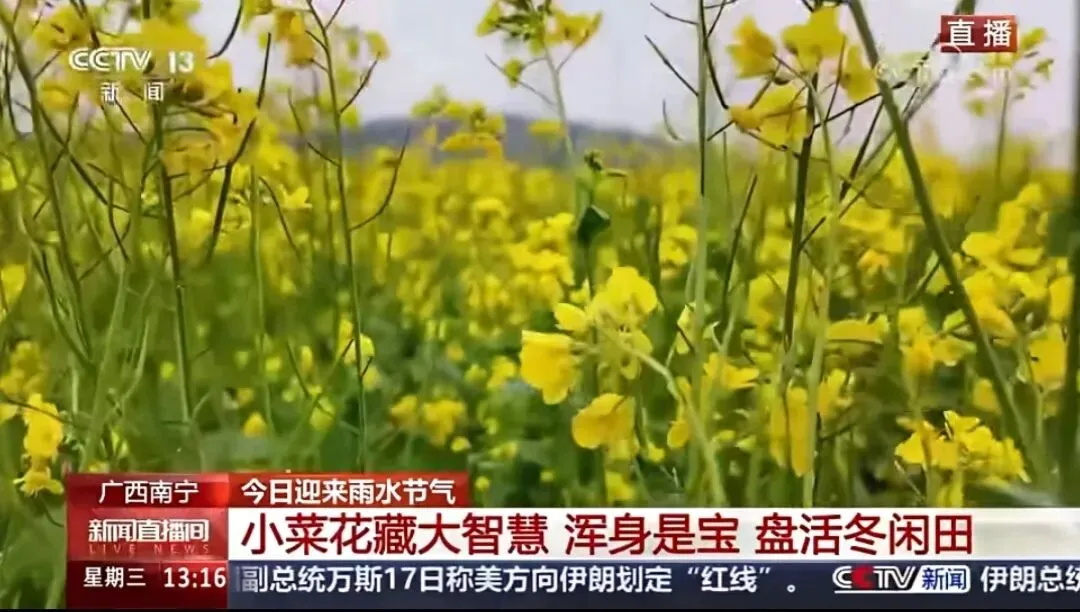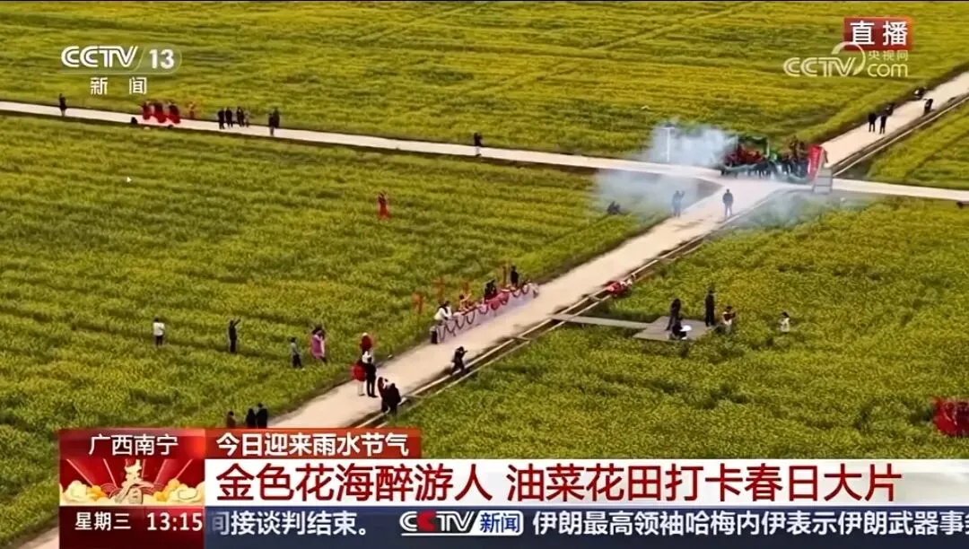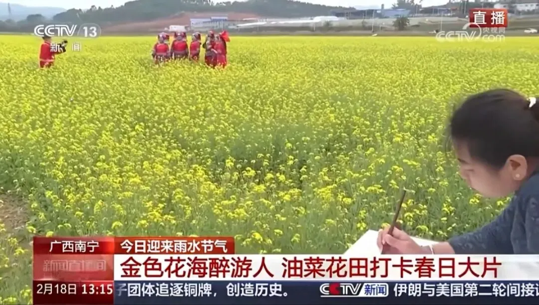 这个春节,广西不止有青秀山的层峦叠翠、满园春色,更有一片撞进央视镜头的金色浪漫——南宁青秀区长塘镇,千亩油菜花海如约盛放,把早春的诗意写满大地。