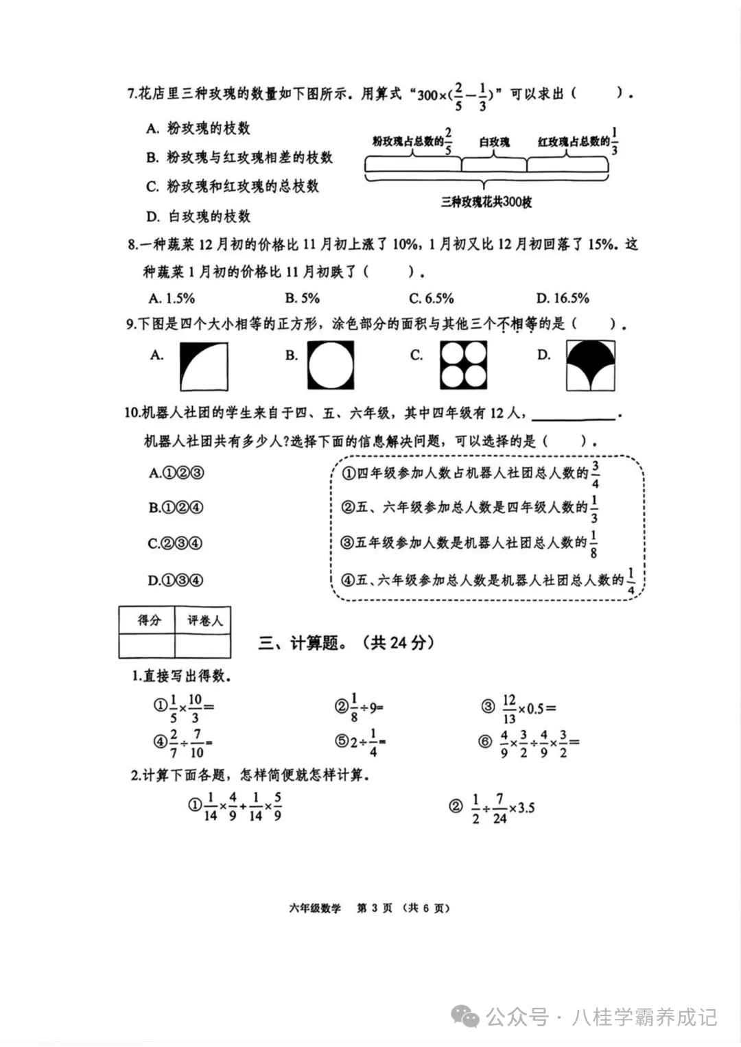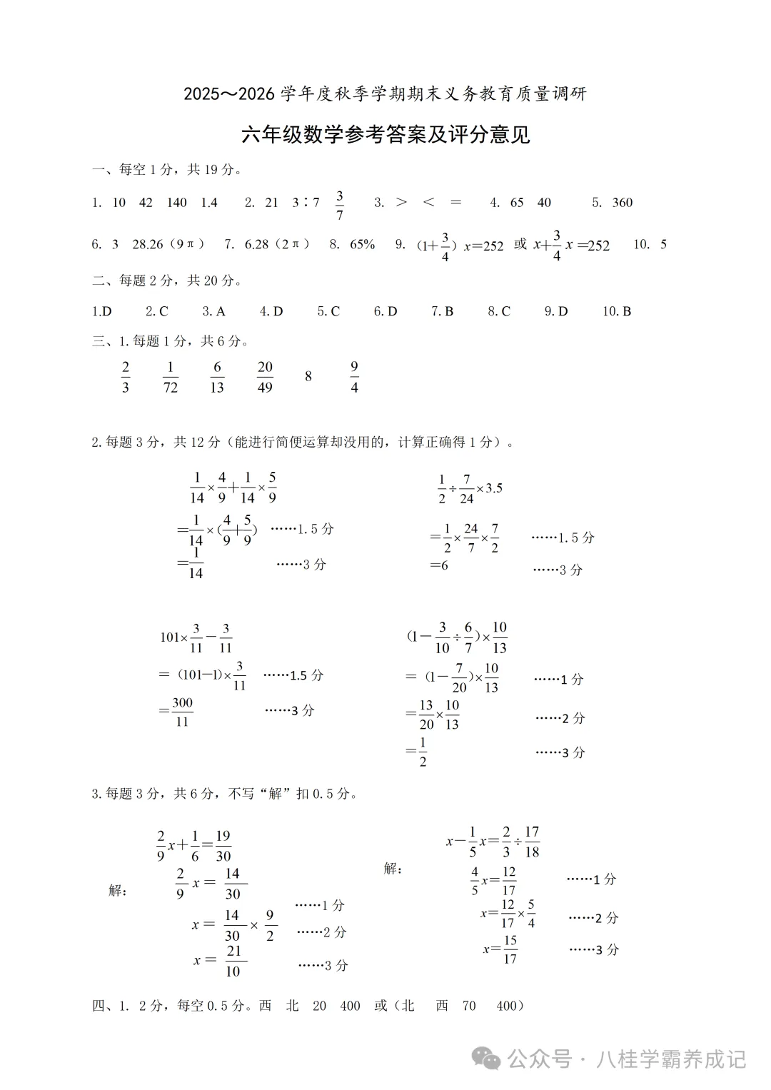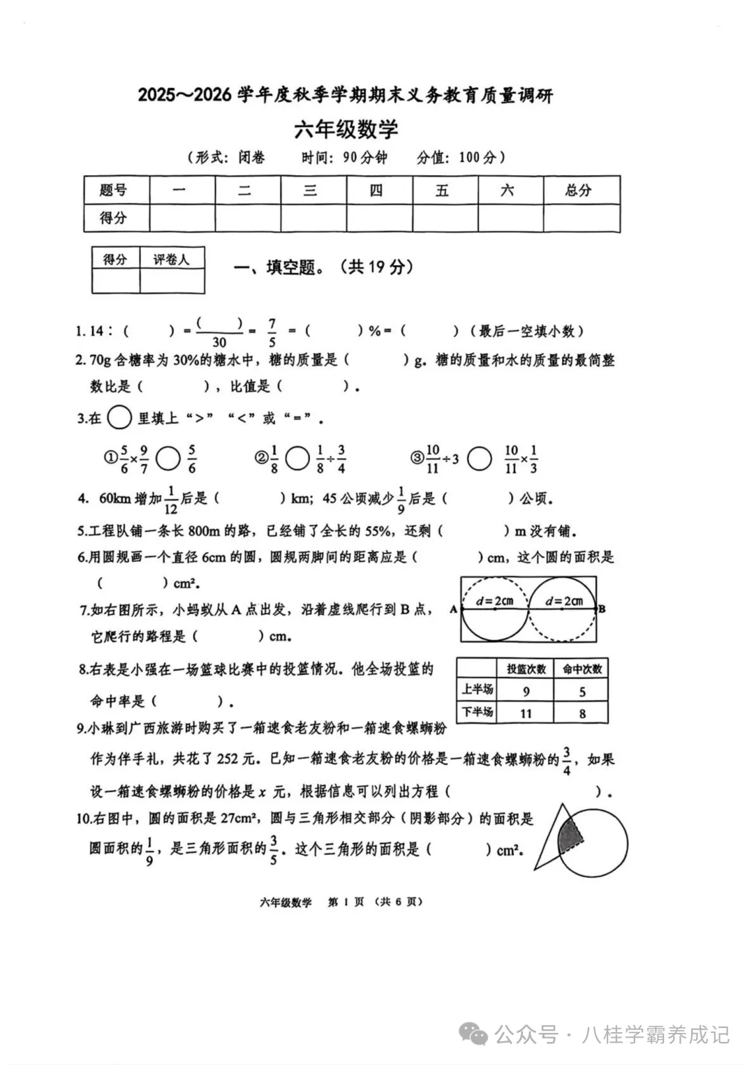 >南宁2025-2026学秋季六年级数学试卷与答案