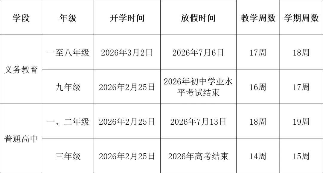 南宁中小学2026暑假放假时间!
