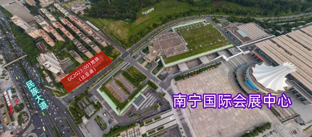 2023年2月,广西弗迪电池有限公司以5652元/㎡楼面价拿下东盟商务区7.578亩地块,成交总价0.54亿元。