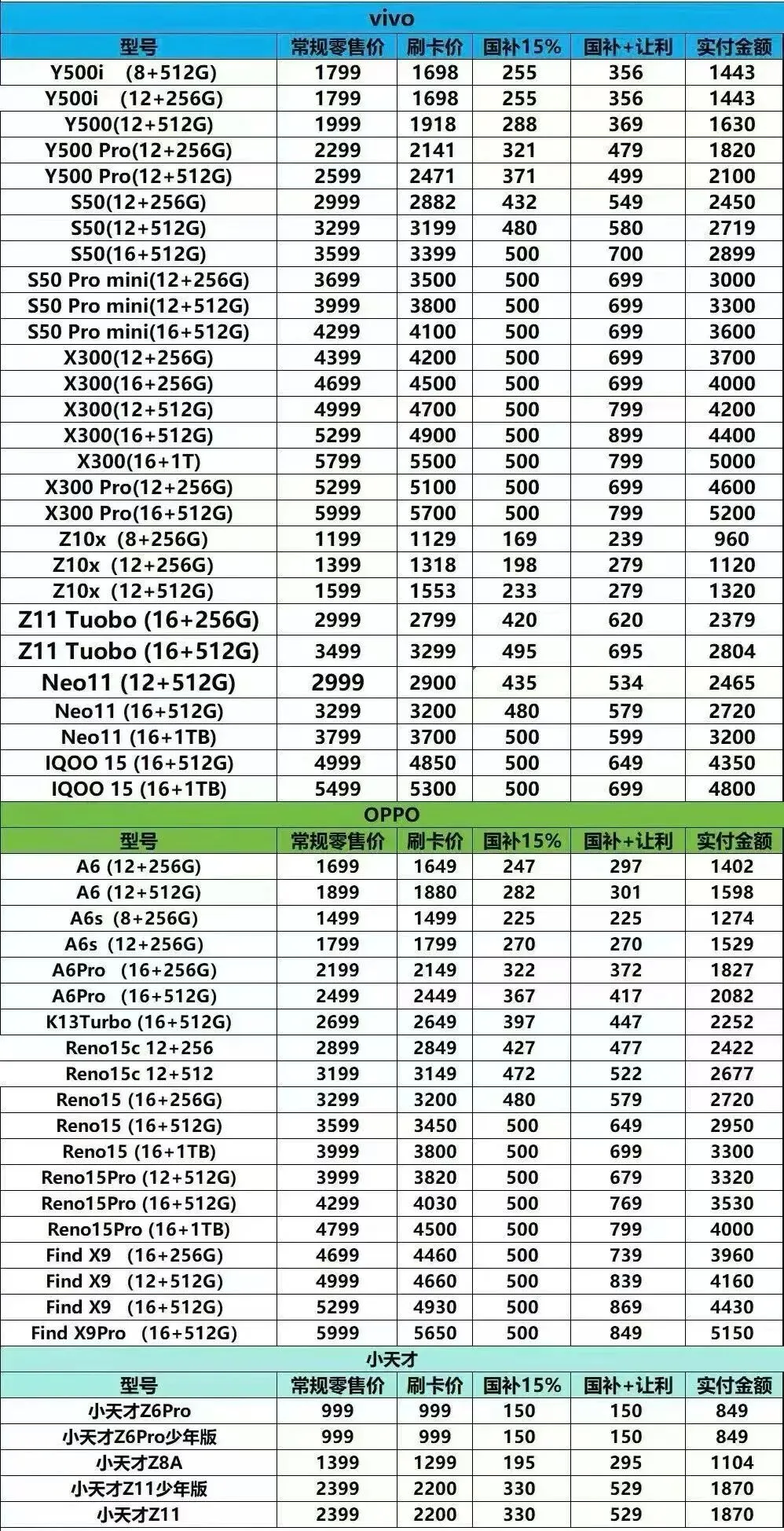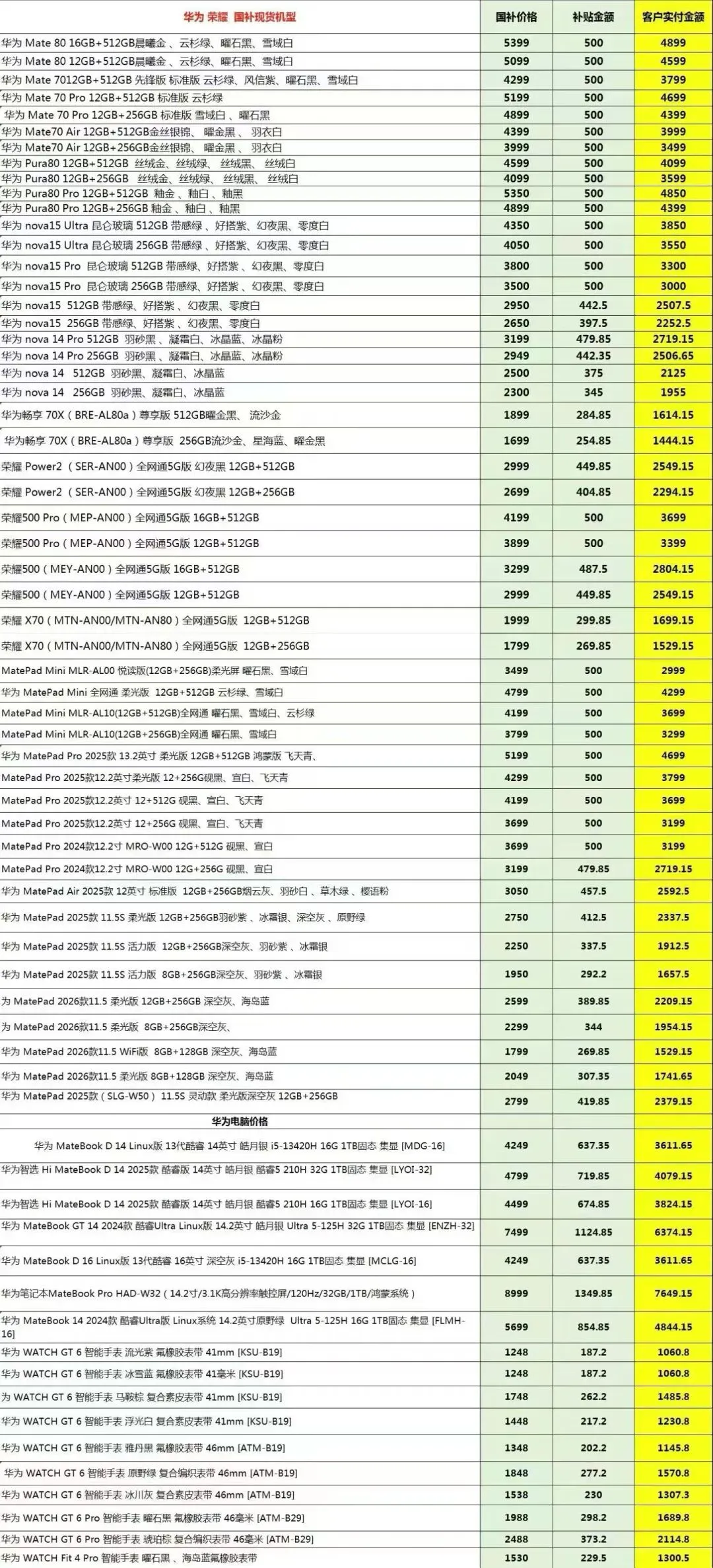 南宁市手机国补优惠后价格参考,外地补贴情况未知!仅供参考!