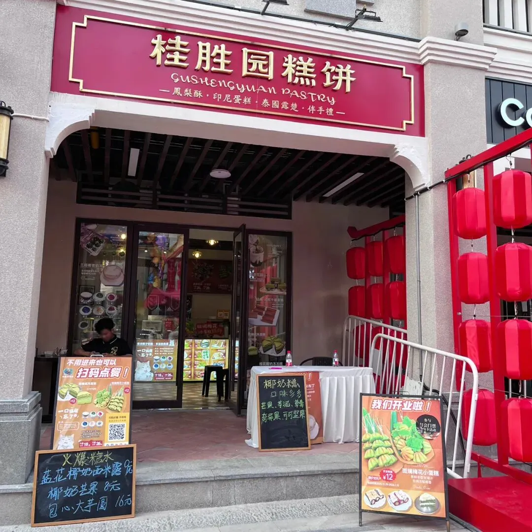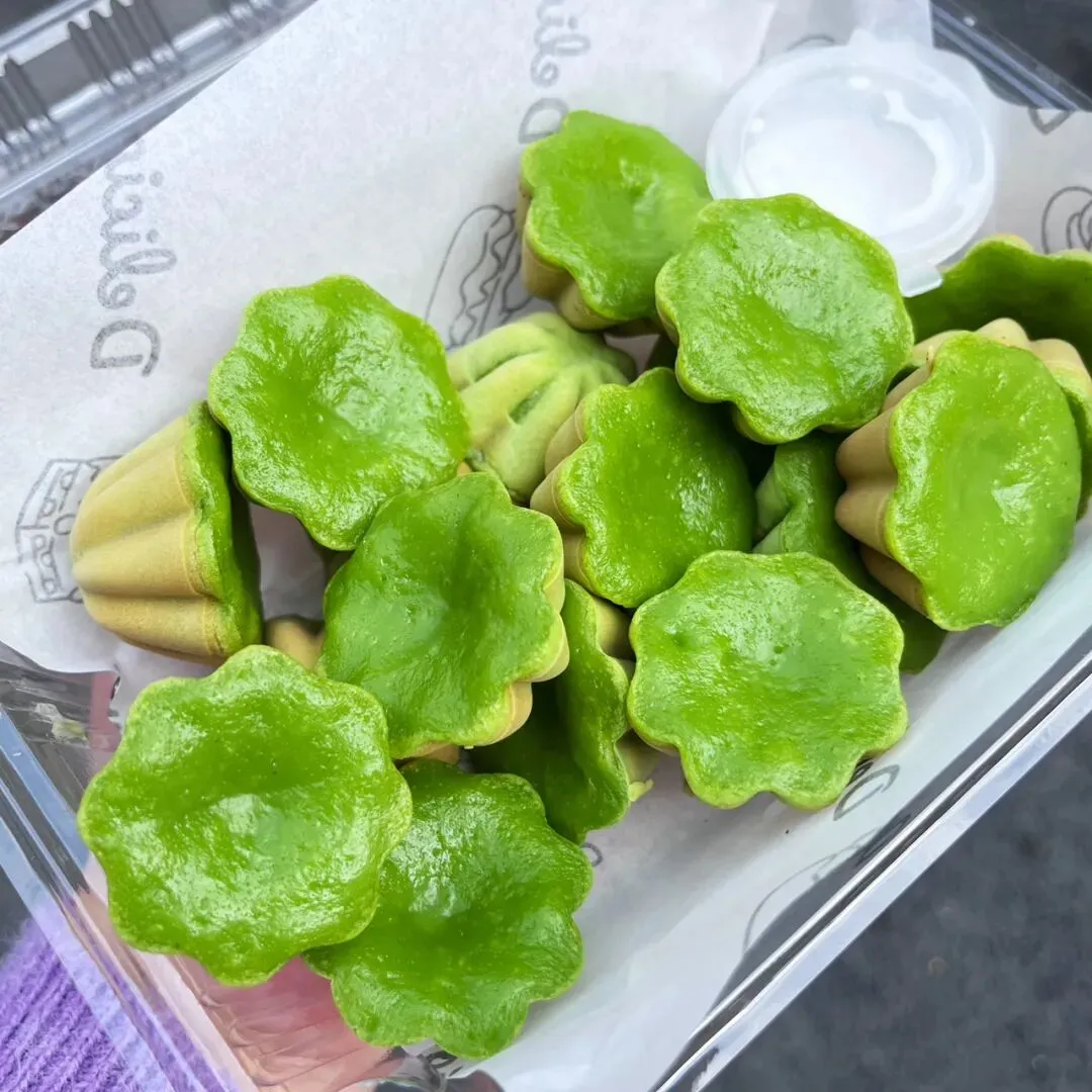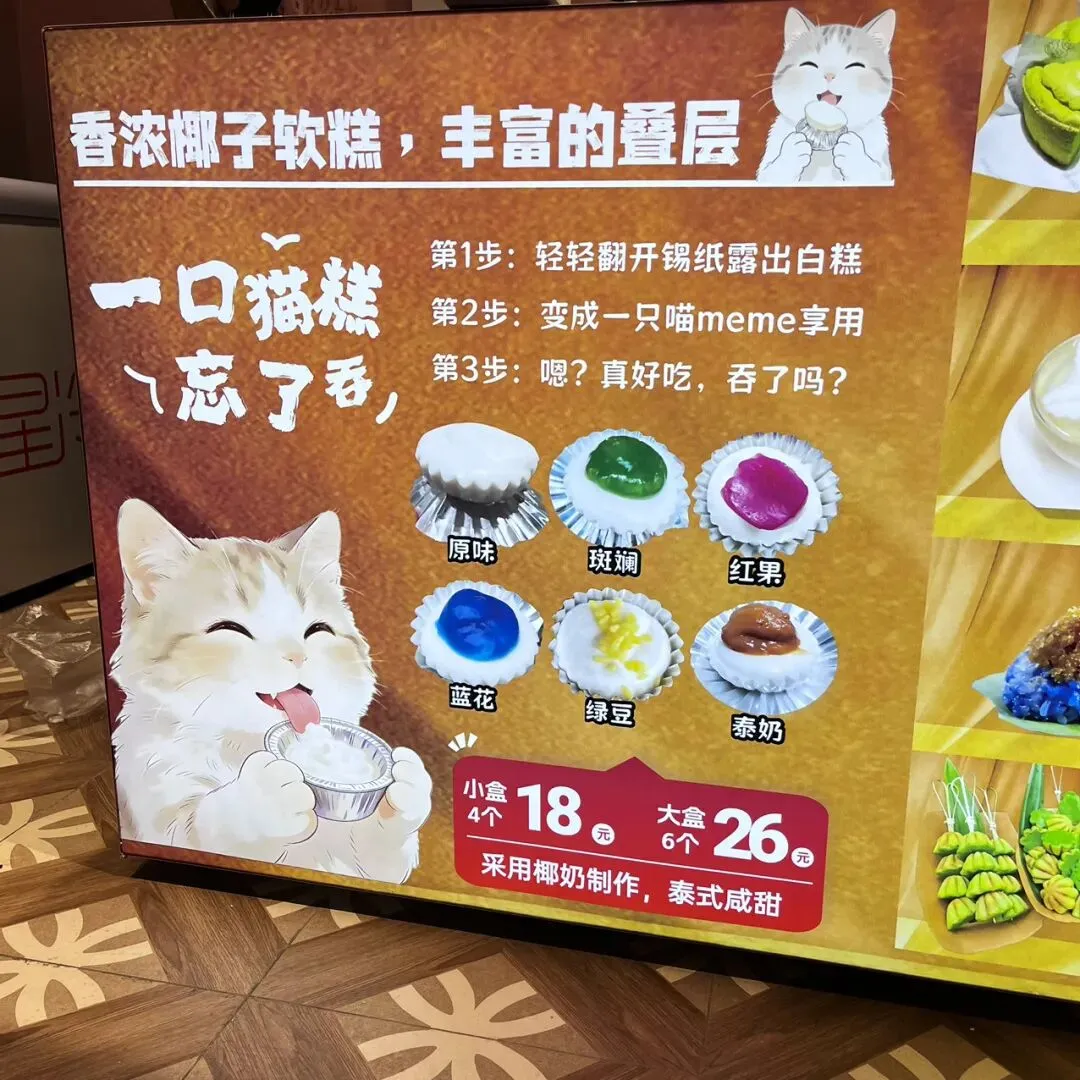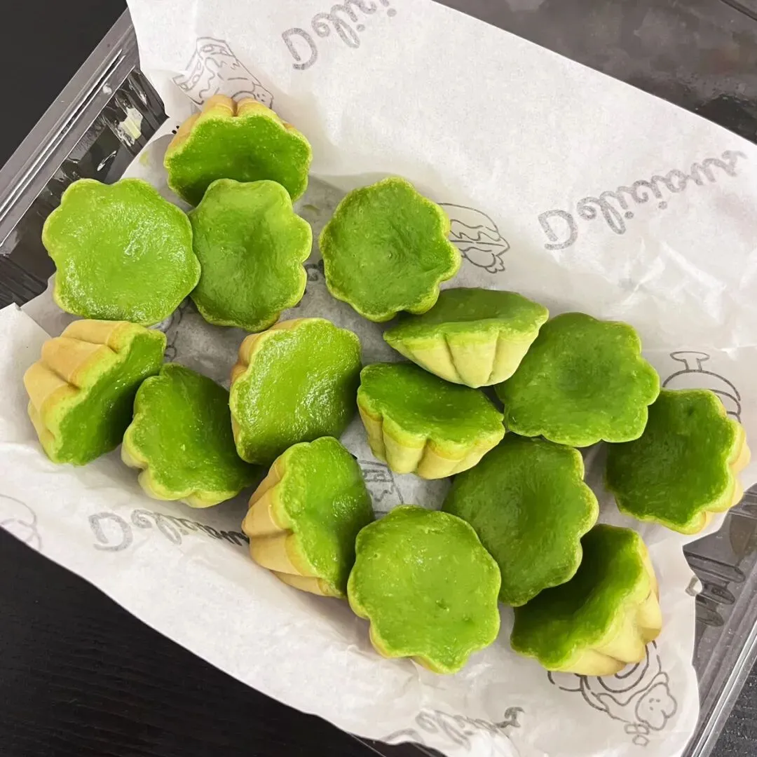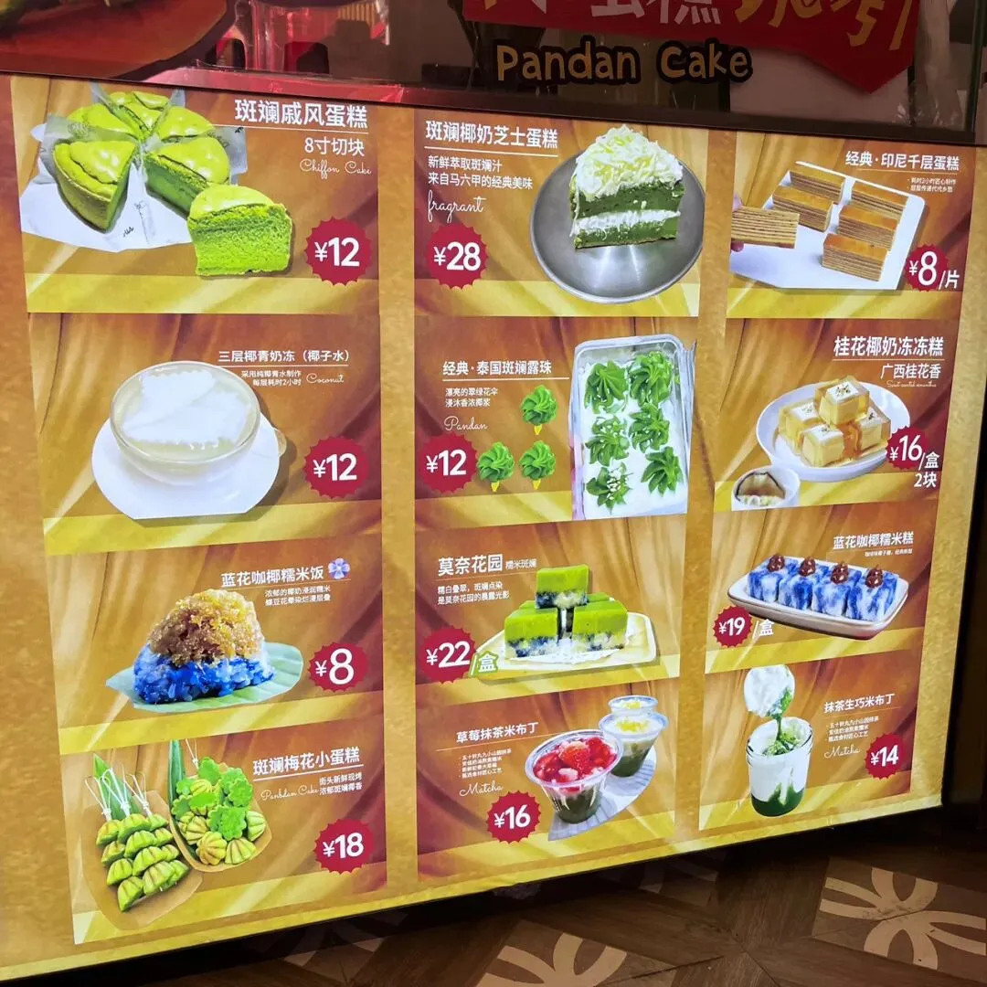 过年前,在新水街那边的邕州古城,发现了一家好吃的斑斓梅花小蛋糕。这梅花小蛋糕加了斑斓叶,有着独特的清香味,有点类似于粽香还有米香。很多东南亚的糕点都喜欢放斑斓叶,比如马来西亚的“娘惹”糕点,泰国的甜品等。斑斓叶除了特殊的香味,这清凉的绿色,在炎热的地区,也更好地增加食欲。斑斓叶除了增加糕点的特殊香气,给糕点有个漂亮的绿色之外,斑斓叶所含有角鲨烯有助于抗氧化,促进血液循环,所含的亚油酸有助于降低血脂,还含有丰富的维生素C、B族维生素,钾、镁等矿物质元素。这家店的斑斓梅花小蛋糕是现做现烤的,将斑斓叶汁调好的面糊,挤到烤小蛋糕的模具里,定时,烤好之后,用竹签挑出来。去到店里,看到都是有下单了,才开始烤,一炉一份,大概有18个左右。那天邕州古城水街人特别多,有很多去邕州古城水街拍古风的小女孩。这斑斓梅花小蛋糕从后面看,倒是像一个个绿色的莲蓬。个头不大,很精致,非常出片,和古风氛围还是挺搭的。去吃的那天,出大太阳,穿着毛衣非常热,看到这清凉的糕点,仿佛到了夏天。这斑斓梅花小蛋糕还配了一小盒椰浆,点着椰浆吃非常清爽。除了斑斓梅花小蛋糕,当天还点了一份可爱的“猫糕”,是一种椰子软糕,吃起来Q弹清爽,有着浓香的椰子味。“猫糕”小份的有4个,18块钱一份。口味可以自己选,当时选了椰丝、芒果、斑斓、芋泥这4种口味。这些糕点吃起来都不是很甜的那种,比较清爽,所以也不容易腻。这斑斓梅花小蛋糕,虽然说是梅花形状,但是背面看起来像莲蓬,翻到正面,又像一片片绿色的荷叶。这总是不由自主地让人想到夏天,然后在吃这些糕点的时候,不知怎么的,脑子里面老是在回荡加缪的“在隆冬,我终于明白,我身上有个不可战胜的夏天”这句话。之前主要是被斑斓梅花小蛋糕和“猫糕”所吸引,就直接奔这两种去了。去到店里,发现还有很多好看,看起来也好吃的其他糕点。这些看起来都挺清凉的,南宁的夏天那么漫长,看来这个夏天是有口福了。斑斓梅花小蛋糕也是18块钱一份,不过那天去的时候刚开业不久,有活动,是12块钱一份。这家店就在邕州古城水街大门旁边,进到大门就看见了,叫“桂胜园糕饼”。
