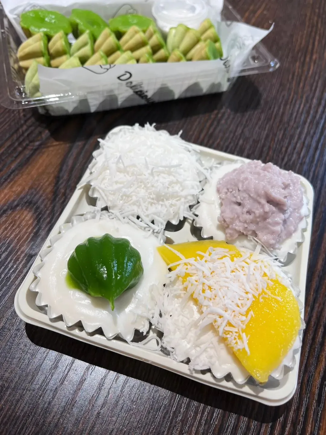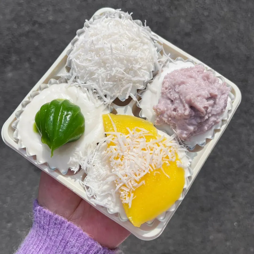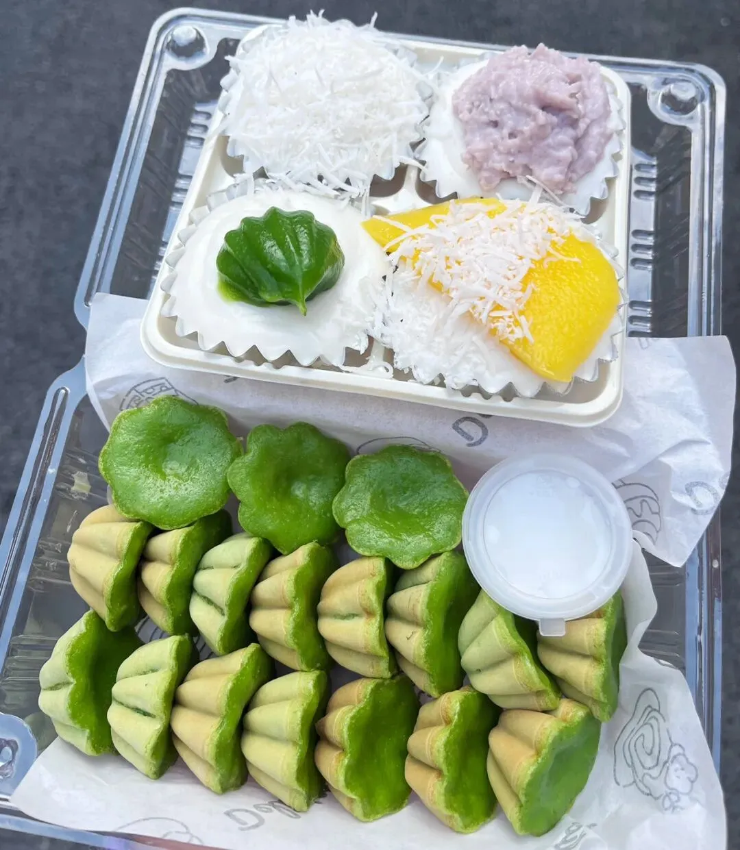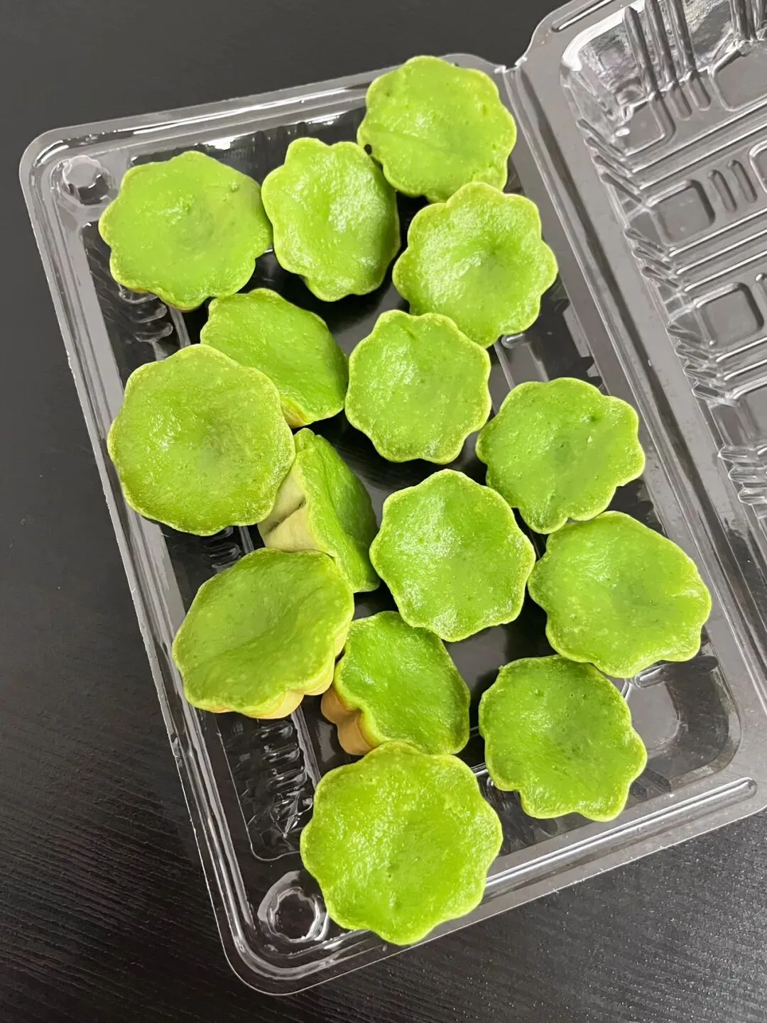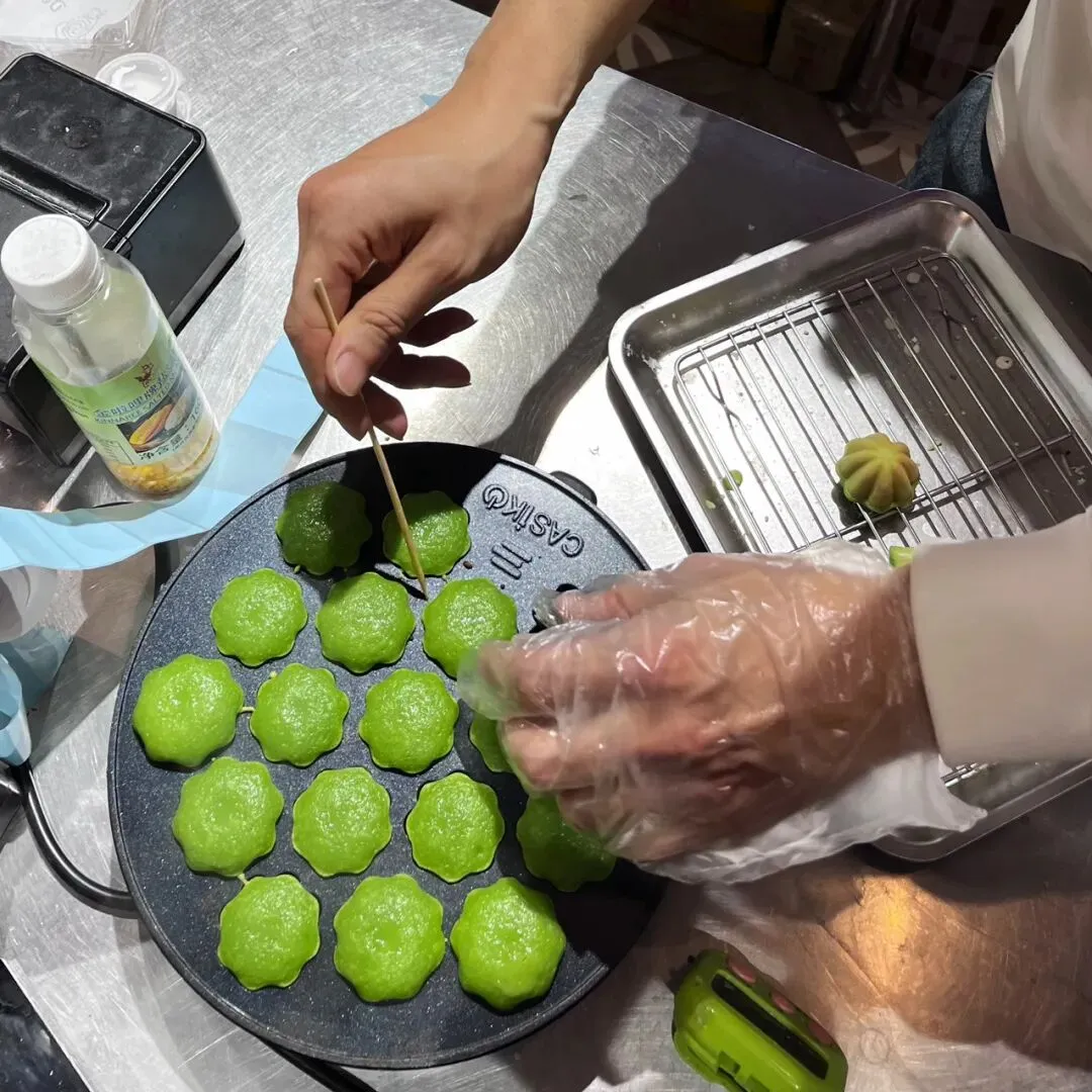 过年前,在新水街那边的邕州古城,发现了一家好吃的斑斓梅花小蛋糕。这梅花小蛋糕加了斑斓叶,有着独特的清香味,有点类似于粽香还有米香。很多东南亚的糕点都喜欢放斑斓叶,比如马来西亚的“娘惹”糕点,泰国的甜品等。斑斓叶除了特殊的香味,这清凉的绿色,在炎热的地区,也更好地增加食欲。斑斓叶除了增加糕点的特殊香气,给糕点有个漂亮的绿色之外,斑斓叶所含有角鲨烯有助于抗氧化,促进血液循环,所含的亚油酸有助于降低血脂,还含有丰富的维生素C、B族维生素,钾、镁等矿物质元素。这家店的斑斓梅花小蛋糕是现做现烤的,将斑斓叶汁调好的面糊,挤到烤小蛋糕的模具里,定时,烤好之后,用竹签挑出来。去到店里,看到都是有下单了,才开始烤,一炉一份,大概有18个左右。那天邕州古城水街人特别多,有很多去邕州古城水街拍古风的小女孩。这斑斓梅花小蛋糕从后面看,倒是像一个个绿色的莲蓬。个头不大,很精致,非常出片,和古风氛围还是挺搭的。去吃的那天,出大太阳,穿着毛衣非常热,看到这清凉的糕点,仿佛到了夏天。这斑斓梅花小蛋糕还配了一小盒椰浆,点着椰浆吃非常清爽。除了斑斓梅花小蛋糕,当天还点了一份可爱的“猫糕”,是一种椰子软糕,吃起来Q弹清爽,有着浓香的椰子味。“猫糕”小份的有4个,18块钱一份。口味可以自己选,当时选了椰丝、芒果、斑斓、芋泥这4种口味。这些糕点吃起来都不是很甜的那种,比较清爽,所以也不容易腻。这斑斓梅花小蛋糕,虽然说是梅花形状,但是背面看起来像莲蓬,翻到正面,又像一片片绿色的荷叶。这总是不由自主地让人想到夏天,然后在吃这些糕点的时候,不知怎么的,脑子里面老是在回荡加缪的“在隆冬,我终于明白,我身上有个不可战胜的夏天”这句话。之前主要是被斑斓梅花小蛋糕和“猫糕”所吸引,就直接奔这两种去了。去到店里,发现还有很多好看,看起来也好吃的其他糕点。这些看起来都挺清凉的,南宁的夏天那么漫长,看来这个夏天是有口福了。斑斓梅花小蛋糕也是18块钱一份,不过那天去的时候刚开业不久,有活动,是12块钱一份。这家店就在邕州古城水街大门旁边,进到大门就看见了,叫“桂胜园糕饼”。