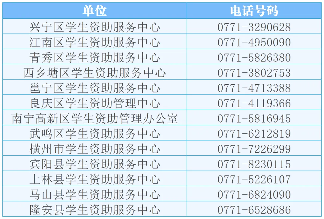 附件2:各县(市、区)学生资助服务中心咨询电话