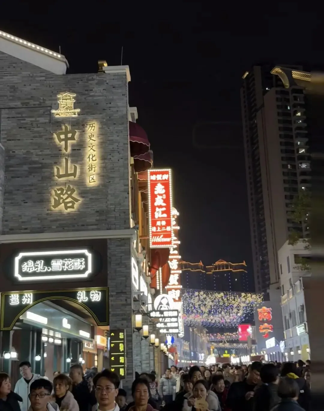 中山路夜市——2月6日,升级改造后的南宁中山路全新开街。老街新岁,烟火如常。笨圆圆老友粉店前排起长龙,酸笋、豆豉、蒜米、辣椒猛火爆炒,一勺高汤浇下,酸辣鲜香直往鼻腔里钻——这是老南宁最熟悉的味道。阿光豆浆油条摊主一句“老样子”,道尽街坊情谊;冰神糖水铺23年老店回归,近百种甜品上新。还有黄皮酱卷筒粉、酸嘢等本土小吃,从美食开始了解一座城市 。