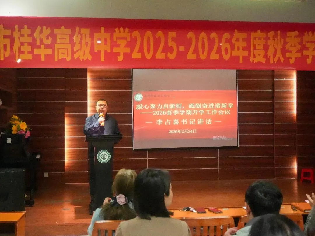 意识形态上,要把稳政治方向,压实主体责任;师德师风建设是教师队伍发展的关键。要激活教师队伍动力,严守师德底线,实行师德考核负面清单“一票否决”制,让教师时刻自省自律。同时优化人事管理与薪酬体系,激发教师工作热情。借助“五校联盟”搭建交流平台,助力教师专业成长;招生宣传是学校发展的窗口。要擦亮招生名片,倡导全员参与宣传,挖掘学校特色,讲好桂华故事,让更多人了解学校优势。后勤服务是学校正常运转的保障;后勤人员要当好师生勤务兵,精细管理水电、食堂、宿舍,从设施检修到饭菜质量,从环境整洁到安全保障,都要做到尽善尽美。深耕楹联校园文化,将传统文化融入现代教育,以文化人、以文育人,营造安全舒适、底蕴深厚的校园环境,让师生在良好氛围中工作学习。