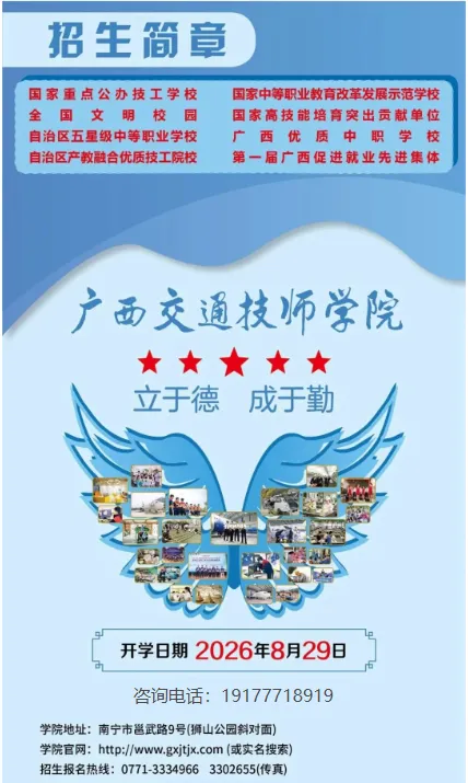 专业建设是人才培养的根基。我校精准对接产业发展需求,开设37个贴合市场的优质专业,重点打造汽车维修、公路施工与养护、现代物流3个广西优质专业群,以优质专业建设引领教学质量提升;同时,着力培育信息、航空2个特色专业群,形成“三优两特”5大交通特色专业群集群协同发展的新格局。各专业群紧密衔接行业岗位标准,整合优质教学资源,让学子所学与市场所需精准匹配。 咨询电话:19177718919 周老师