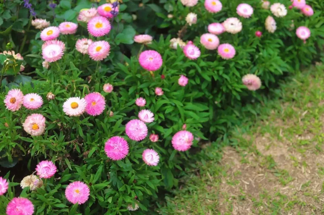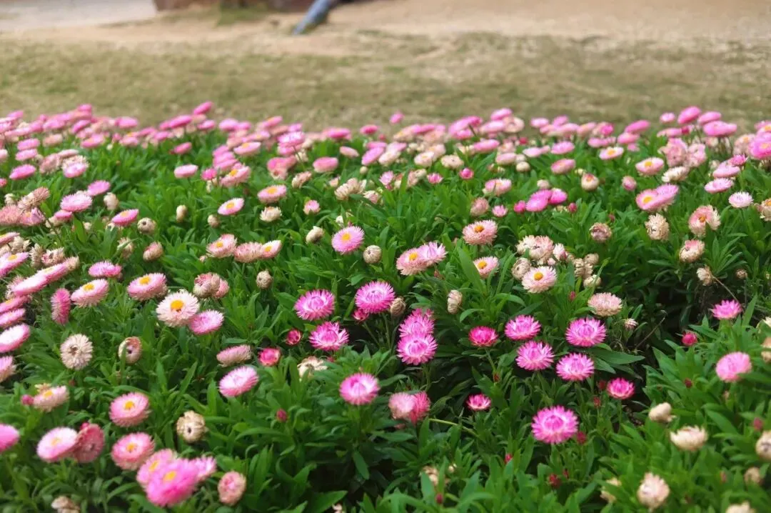 这便是近期公园的新晋“网红”——粉色麦秆菊。