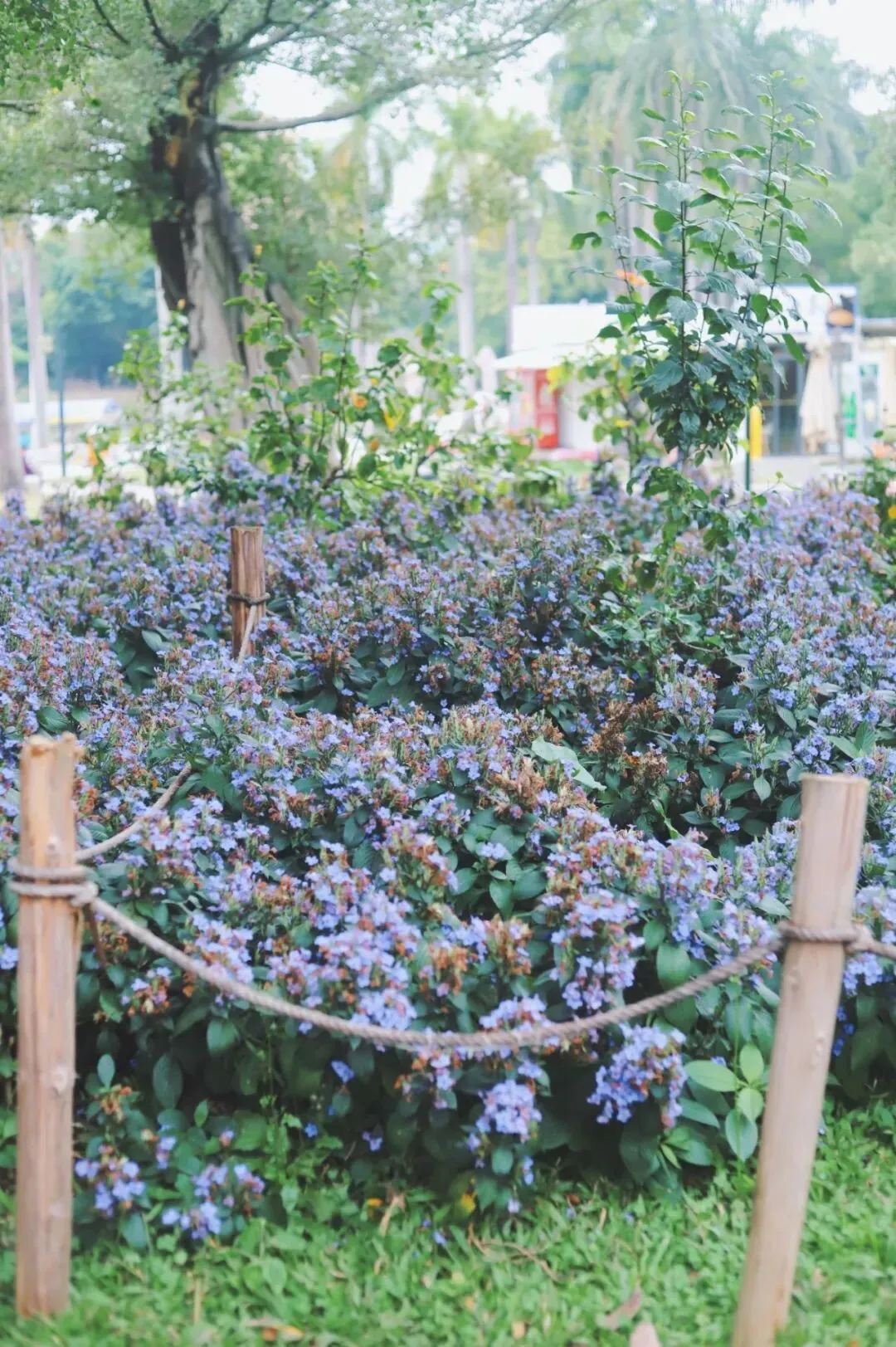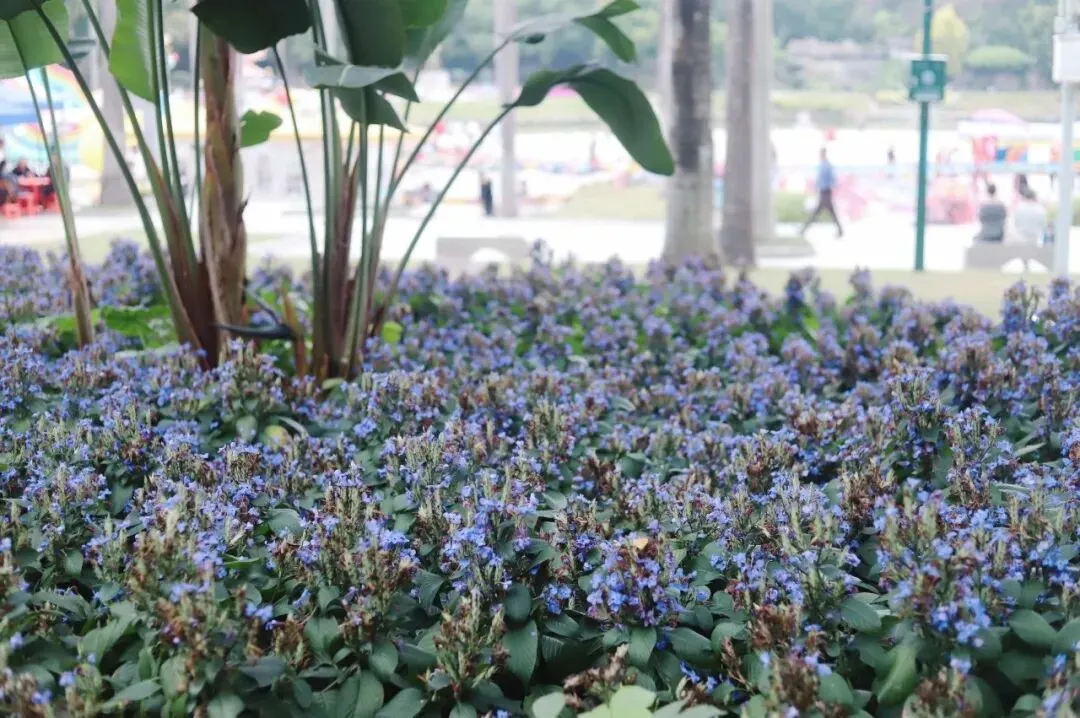 走进公园,还有一小片蓝色的喜花草悄然绽放。