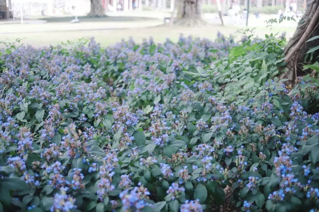 走累了在树下稍作休憩,看着这片清新的蓝色小花,连心情都变得舒畅起来。