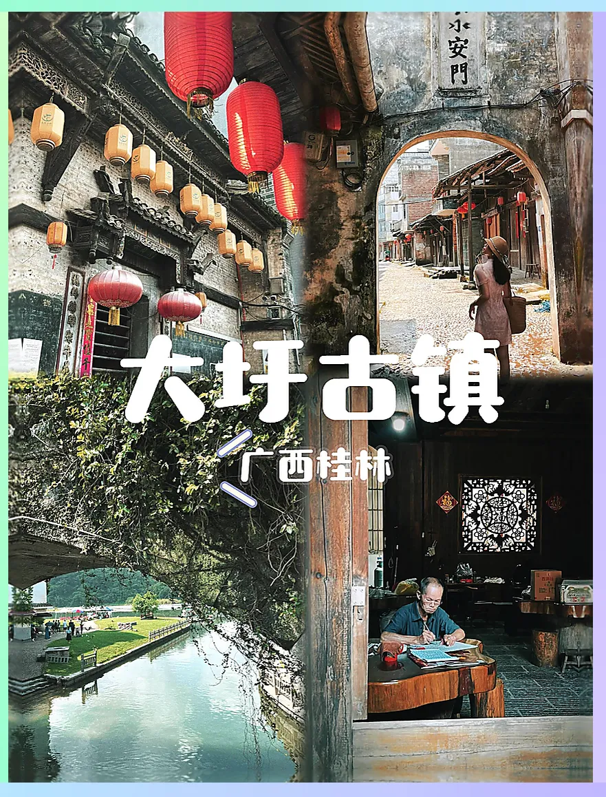 从桂林市区过去,也就半小时车程。建议别自驾,古镇里的路窄,那是留给脚板和独轮车的,车进去了容易“卡”住心情,而且停车位得靠运气。在桂林市区坐去大圩的班车,晃晃悠悠就到了。那种老式的中巴车,窗户开着,风灌进来,还没到地儿,心就已经野了。打车也行,但不划算,少了点在路上慢慢接近历史的仪式感。到了镇口,腿着进去,才对味。