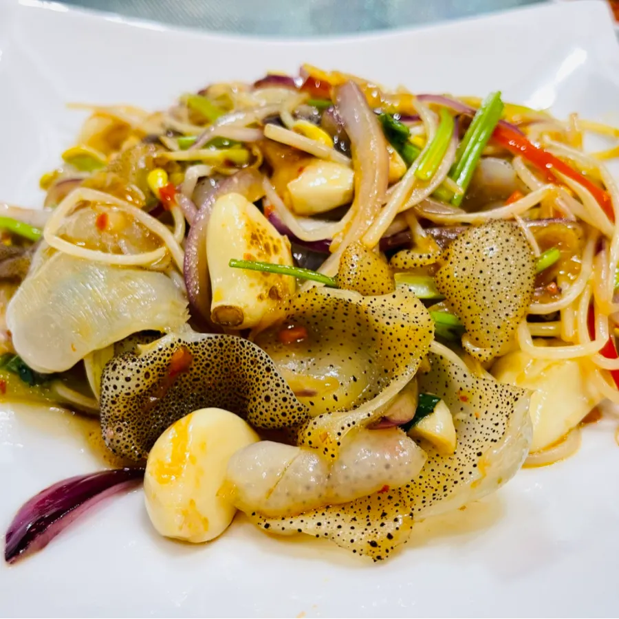 皮皮虾、对虾、海豆芽、门鳝干:都是渔家餐桌常客,做法多样,清蒸、爆炒、油炸皆宜