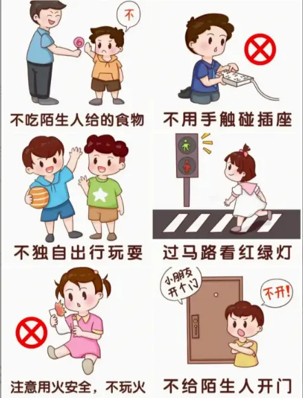 安全第一,预防为主。孩子来园前,请家长仔细检查孩子的服装和口袋,看是否有尖锐细小的潜在危险品,如小刀、药片、铁钉、小颗粒物、玻璃珠等。在家加强对孩子的安全教育,教育孩子学会必要的自我保护方法,如不触摸插座开关、不爬高、不随便吃东西、不跟陌生人走等。