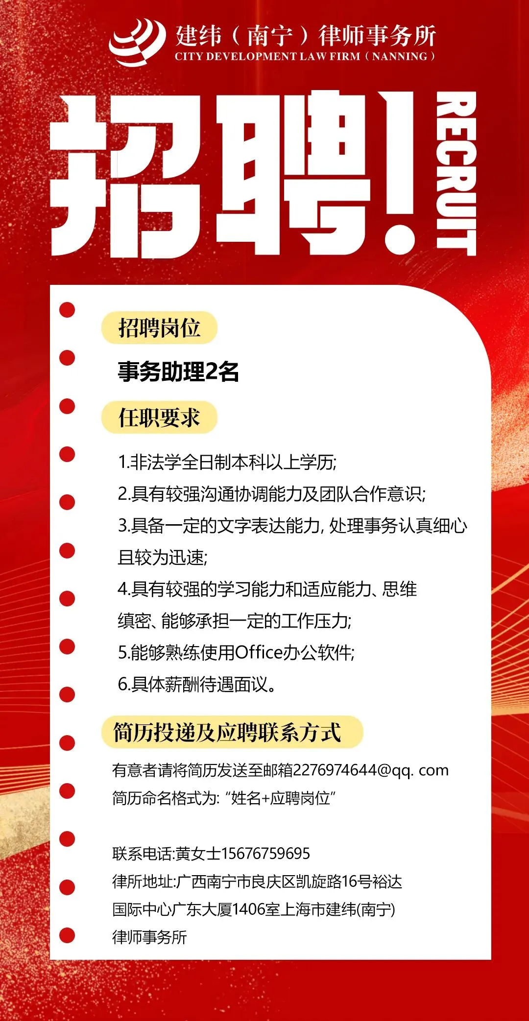 >招聘 | 上海市建纬(南宁)律师事务所招聘事务助理