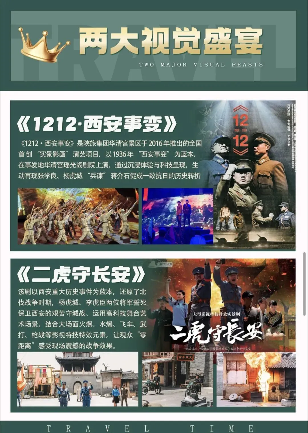 随后赠送观看价值 268 元 / 人的《1212・西安事变》实景影画剧,在华清宫事发地瑶光阁剧院,行走在高度还原的历史场景中,成为历史的 “亲历者”,感受西安事变的历史转折,若遇演出暂停,将变更为《XR 探秘沉睡的帝陵》或《唯有大秦・梦幻帝陵》。